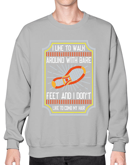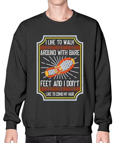 i like to walk around with bare feet and i dont like to comb my hair 293# - walking- Sweatshirt - Crew