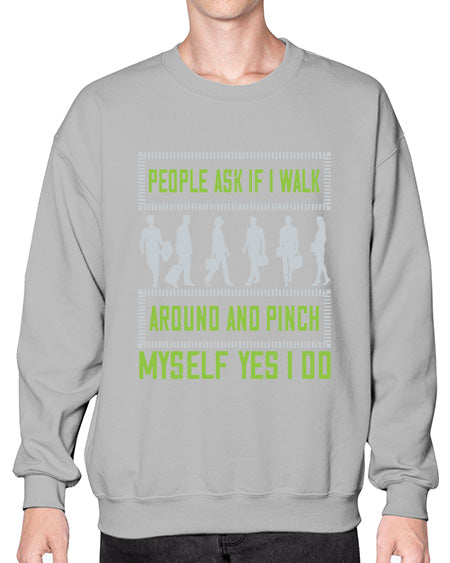 people ask if i walk around and pinch myself yes i do 489# - walking- Sweatshirt - Crew
