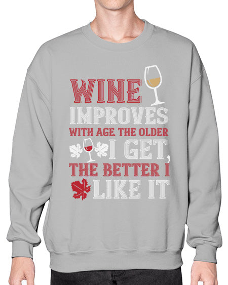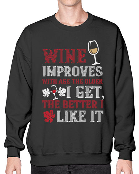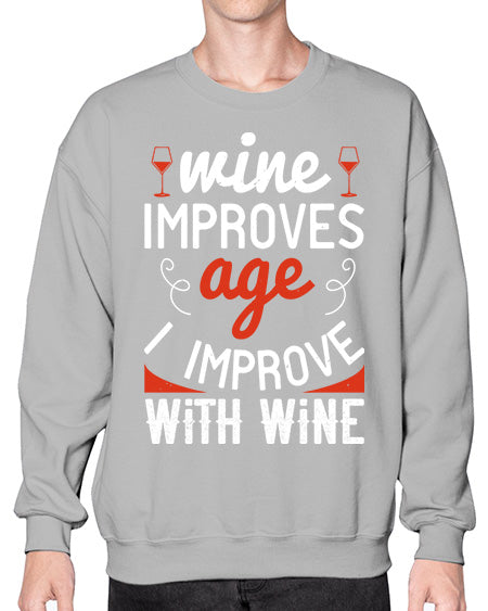 wine improves age i improve with wine 483# - wine- Sweatshirt - Crew