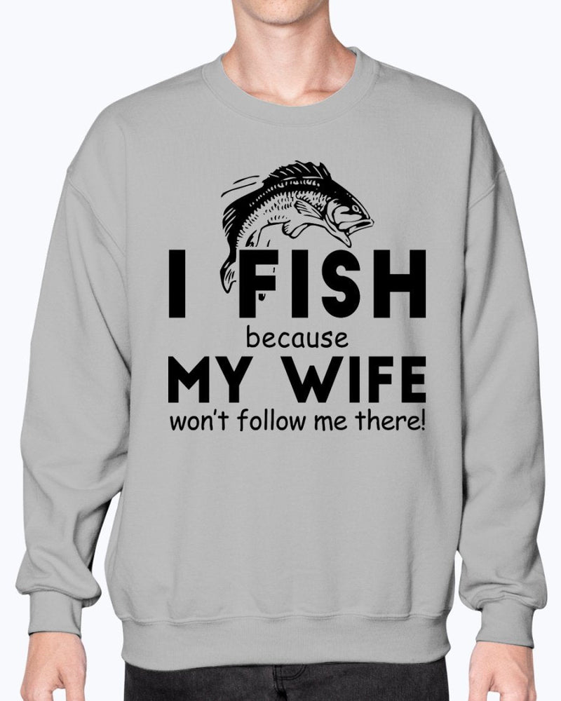I fish my wife wont follow me there- Fishing- Sweatshirt - Crew