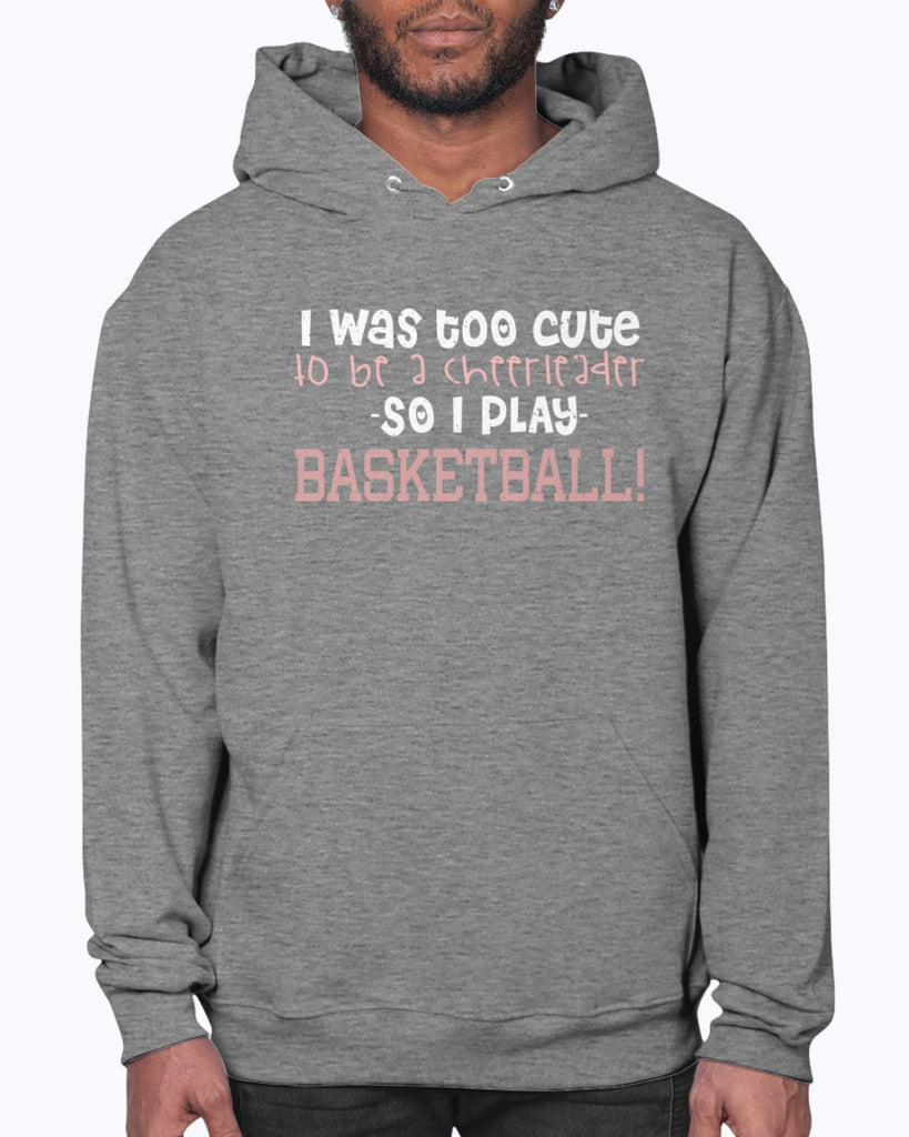 Too Cute to Cheer So I play Basketball - Sports- Hoodie Unisex, machine washable, front pouch pocket - 8 oz, 50% cotton/50% polyester NuBlend�« preshrunk fleece