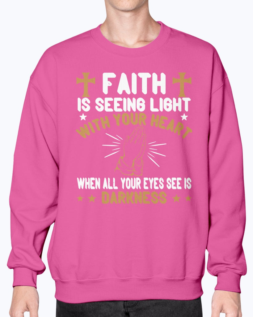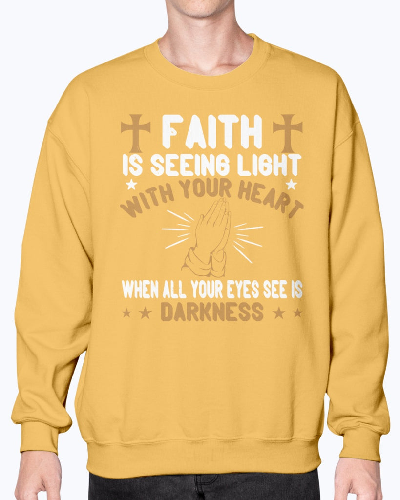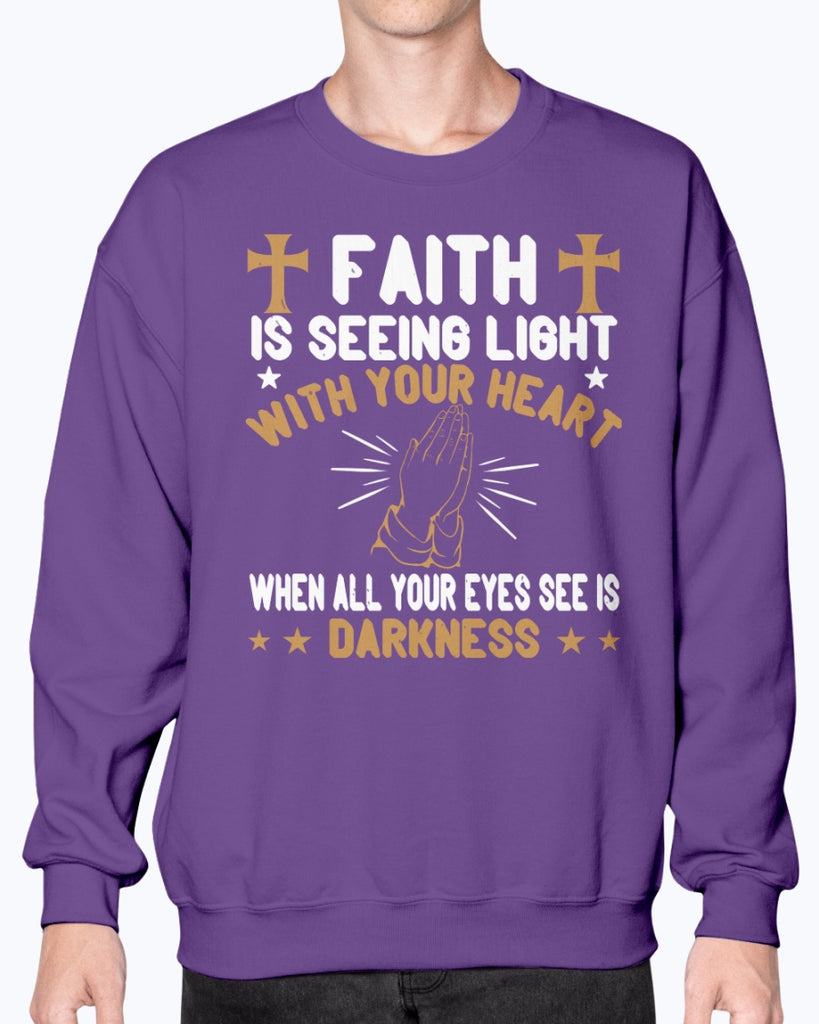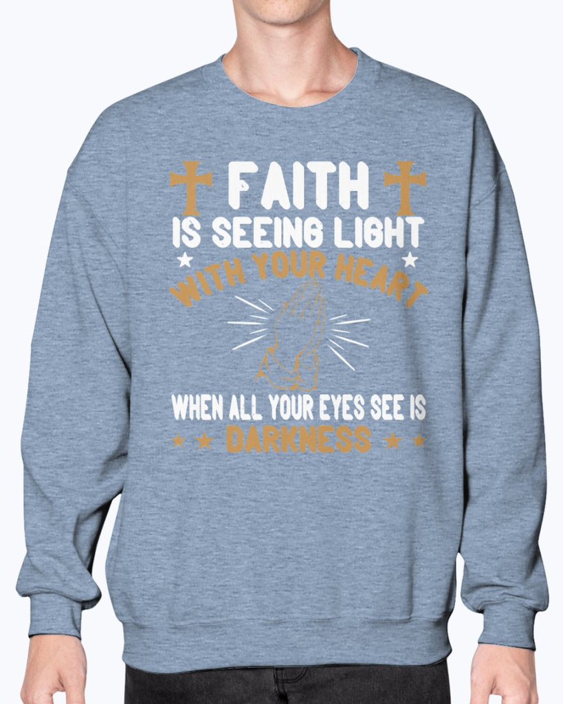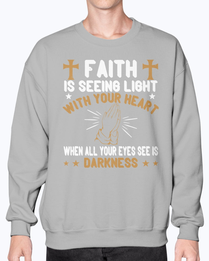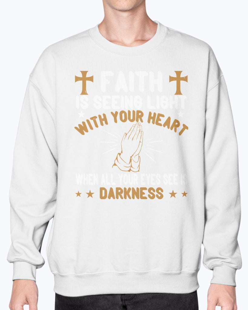 Faith is seeing light with your heart - Christian - Sweatshirt - Crew Details- Preshrunk fleece knit
