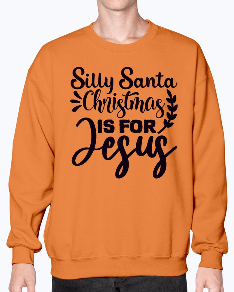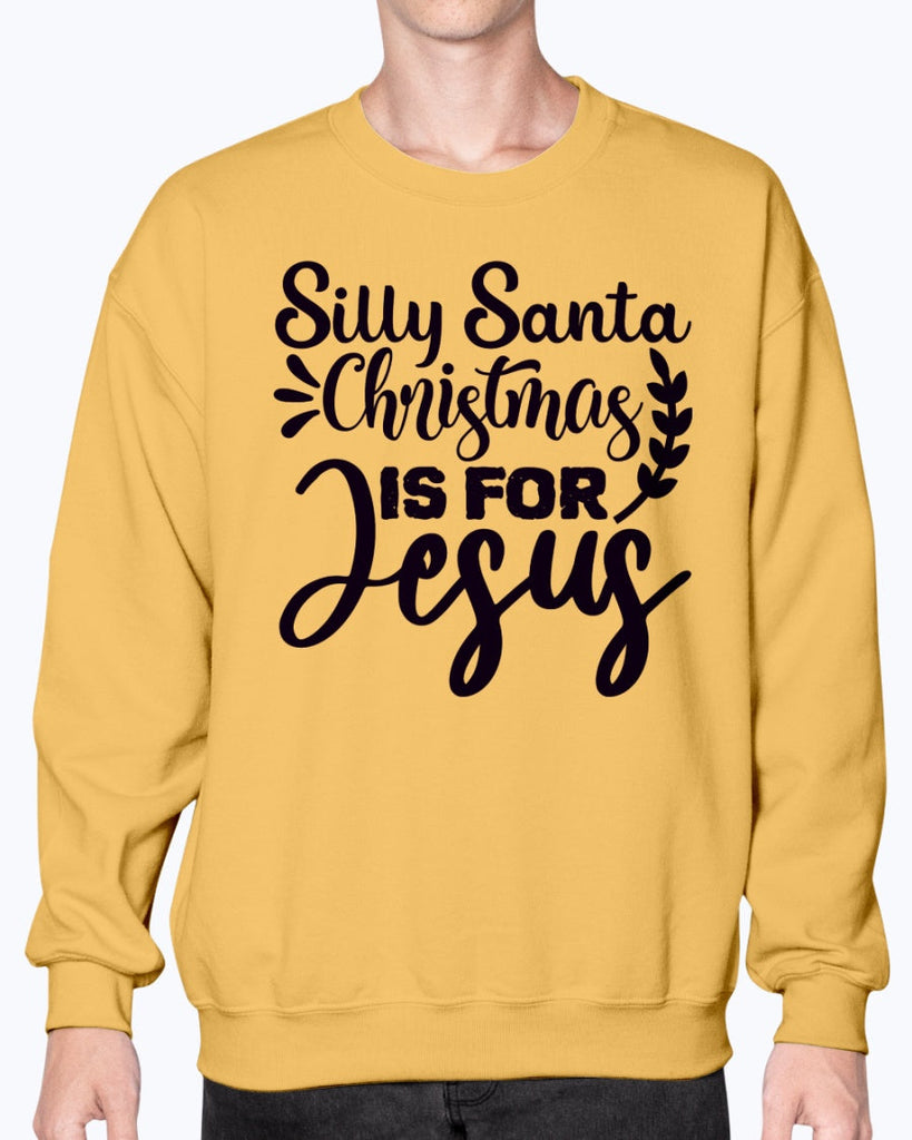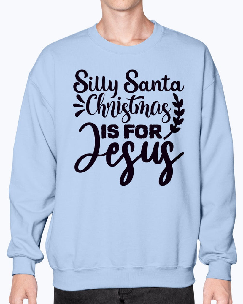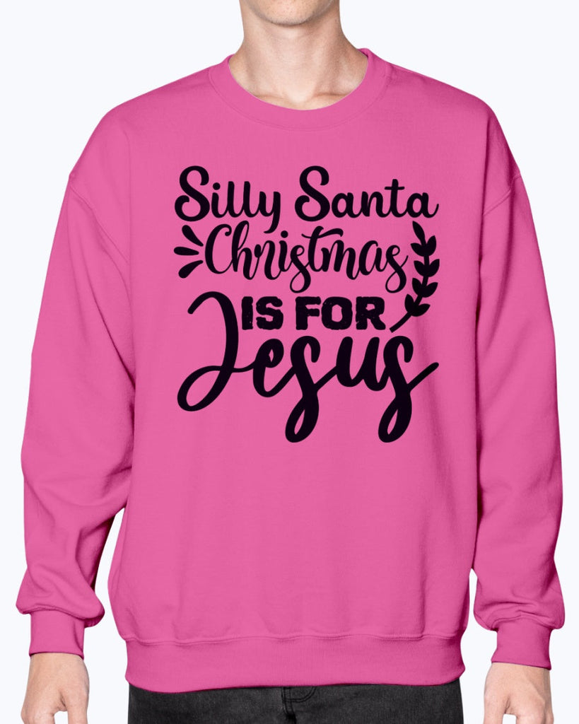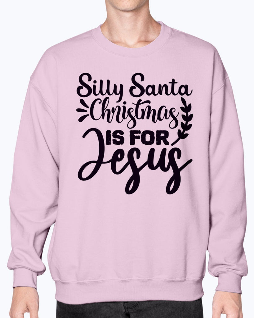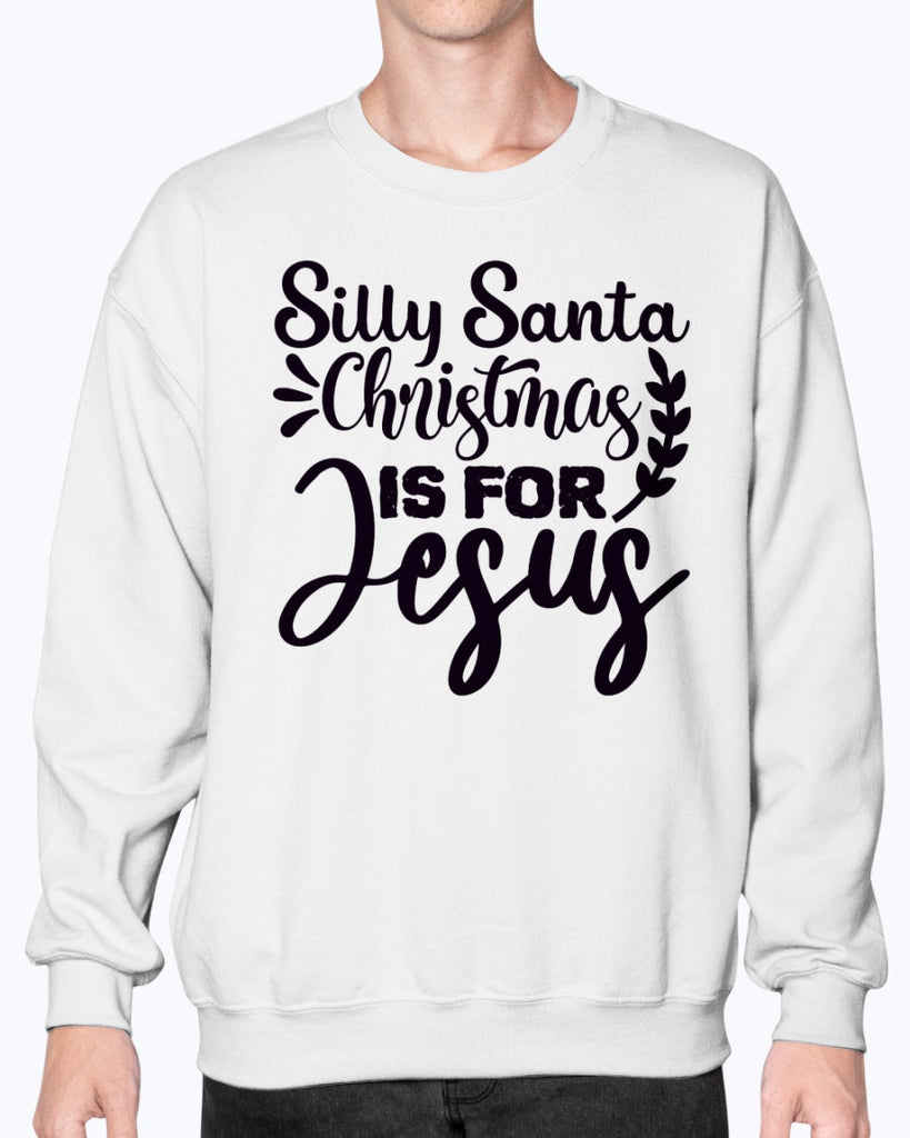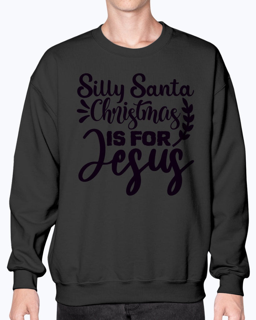 Silly Santa Christmas Is For Jesus- Blessed- Crew Note: There is a 2 - 4 day creation time, which may delay shipping. Details- Preshrunk fleece knit