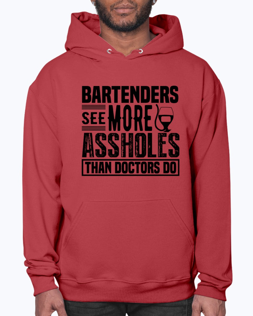 Bartenders See more A-holes - Bartender- Hoodie Unisex, machine washable, front pouch pocket - 8 oz, 50% cotton/50% polyester NuBlend�« preshrunk fleece