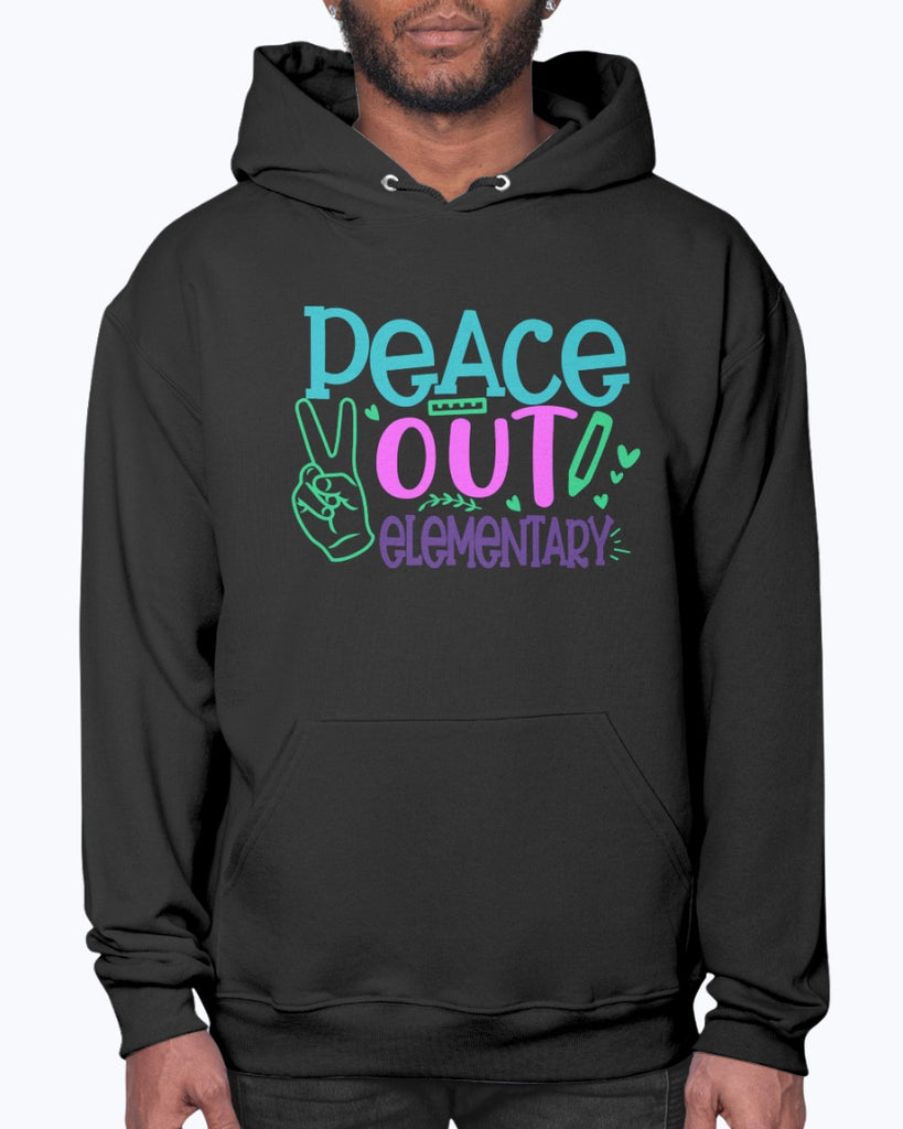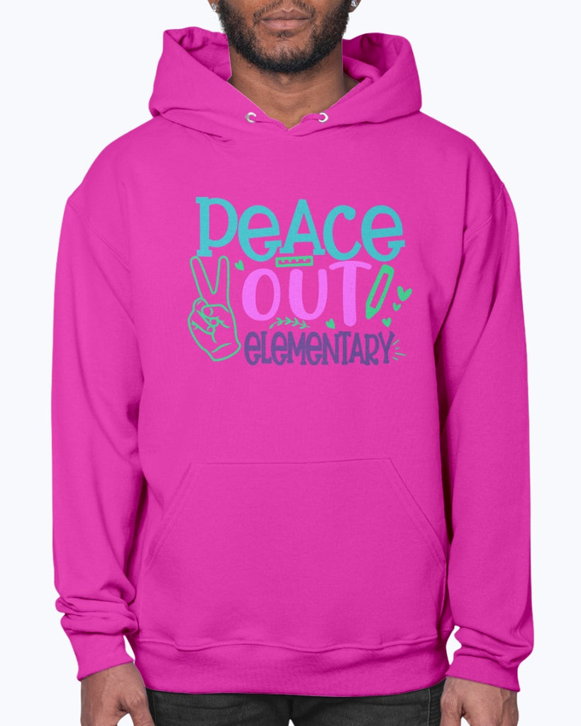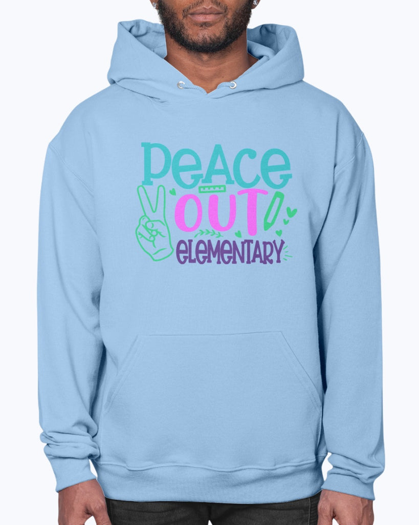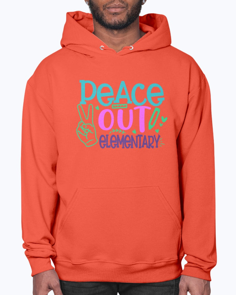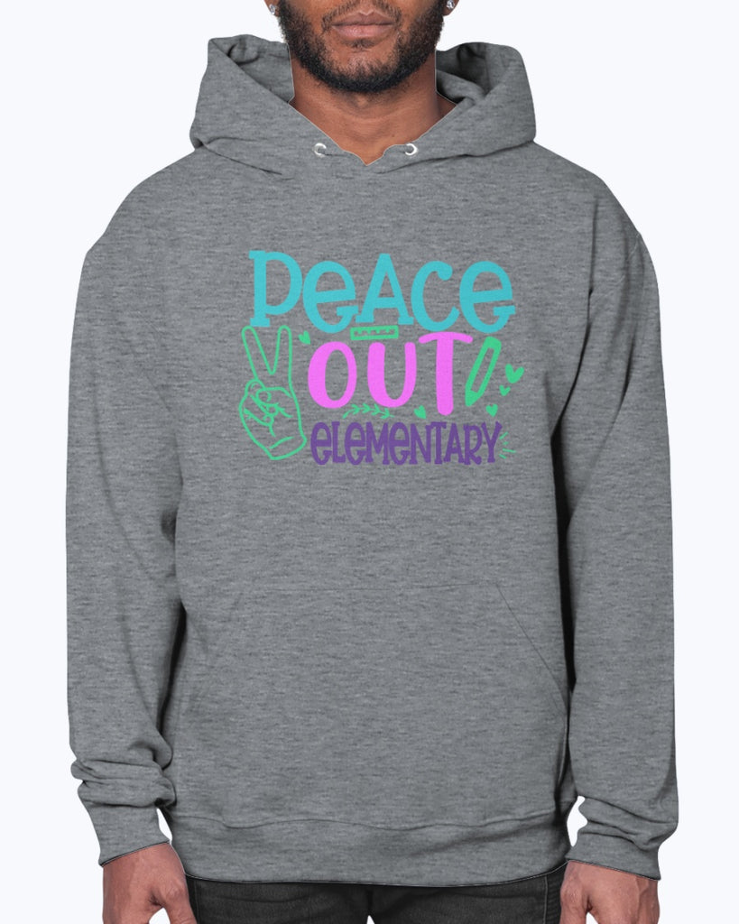 Peace out elementary - School- Hoodie Unisex, machine washable, front pouch pocket - 8 oz, 50% cotton/50% polyester NuBlend�« preshrunk fleece