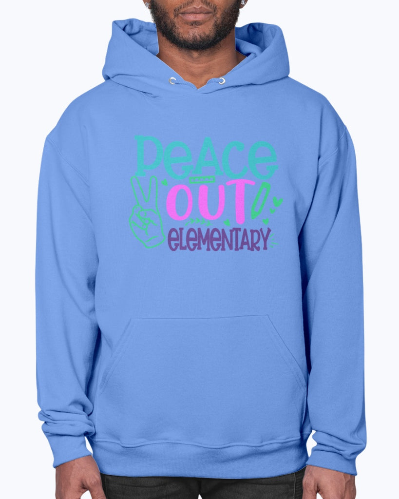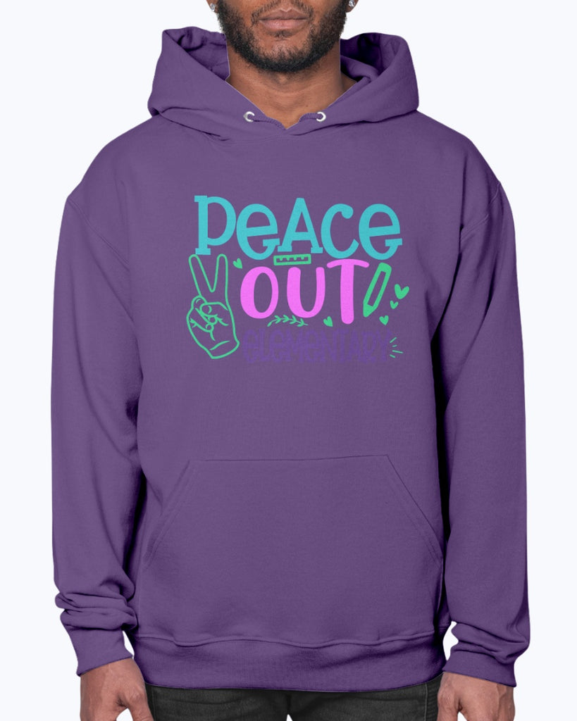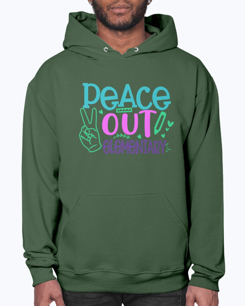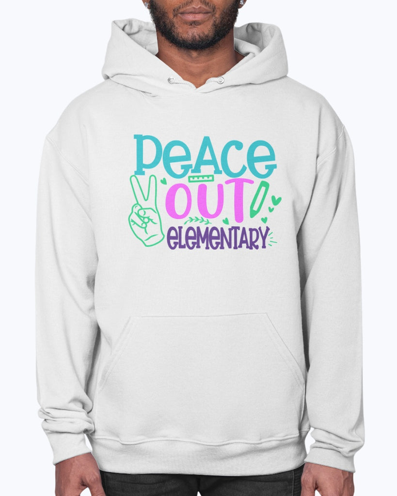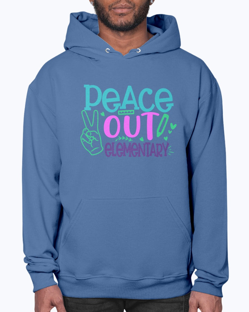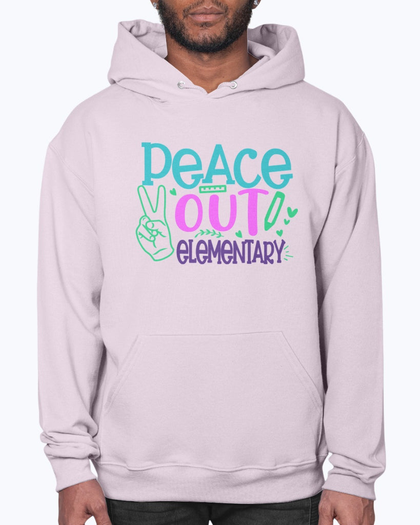 Peace out elementary - School- Hoodie Unisex, machine washable, front pouch pocket - 8 oz, 50% cotton/50% polyester NuBlend�« preshrunk fleece