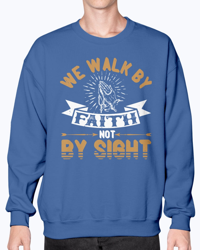 We walk by faith, not by sight - Christian- Sweatshirt - Crew Details- Preshrunk fleece knit
