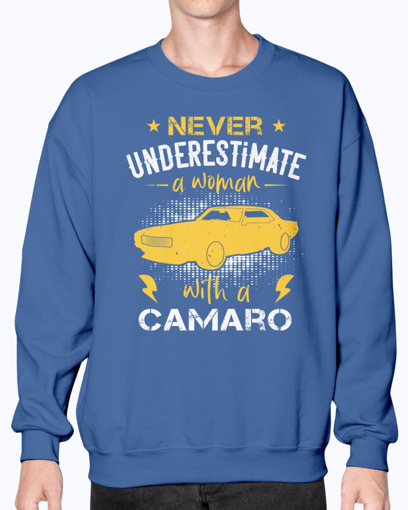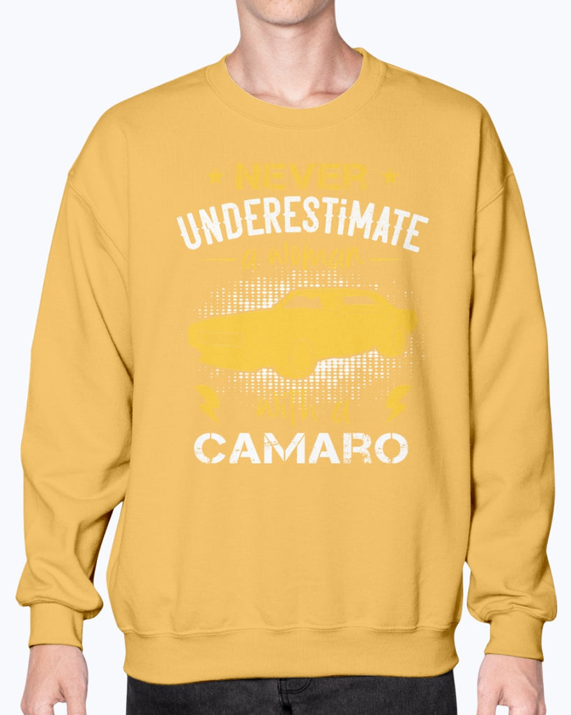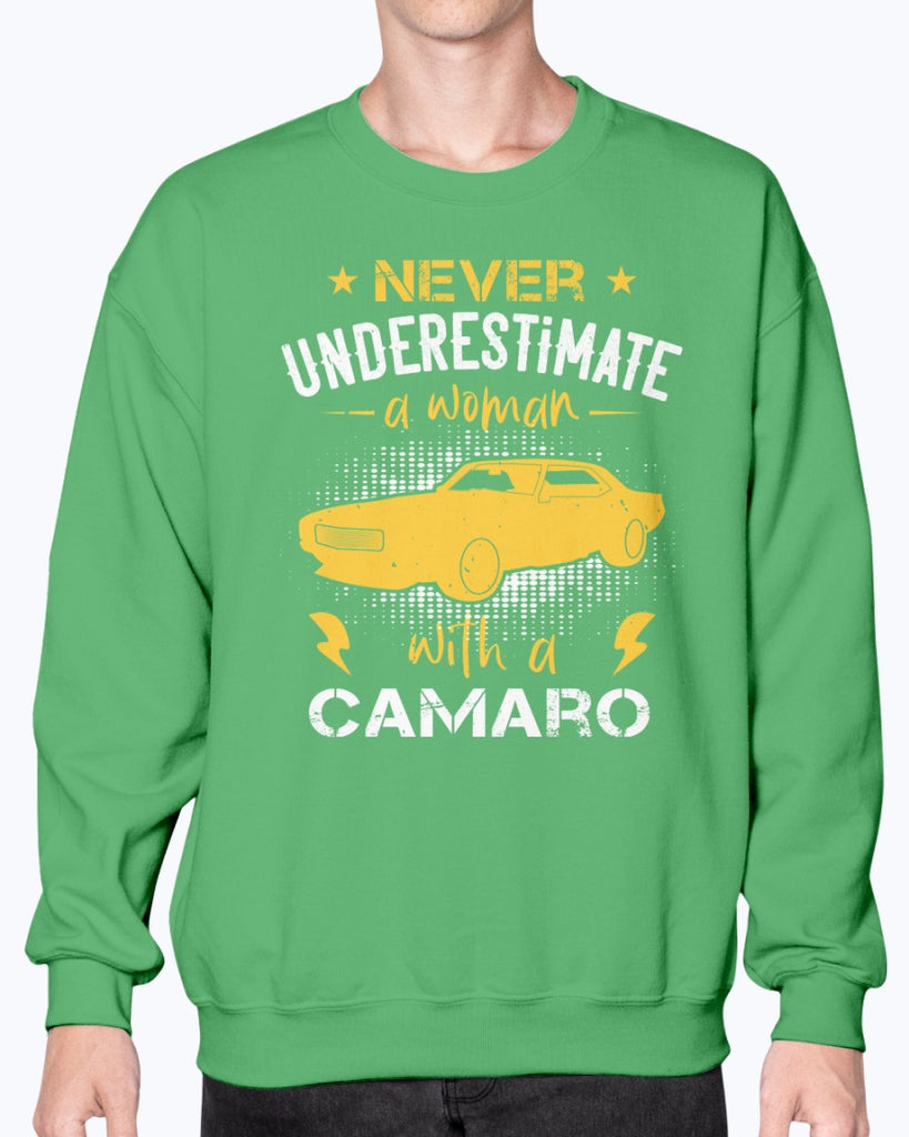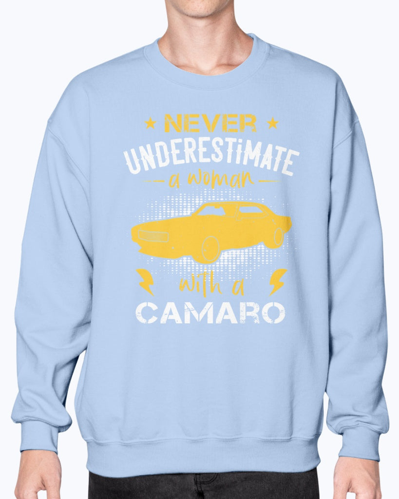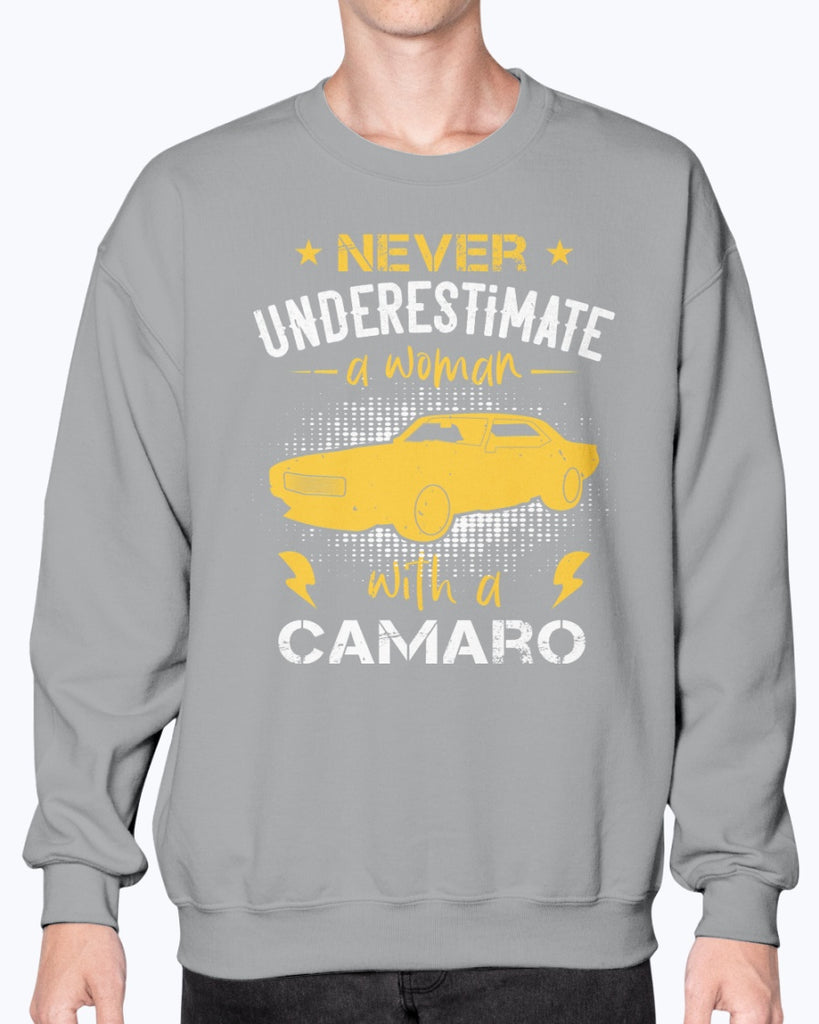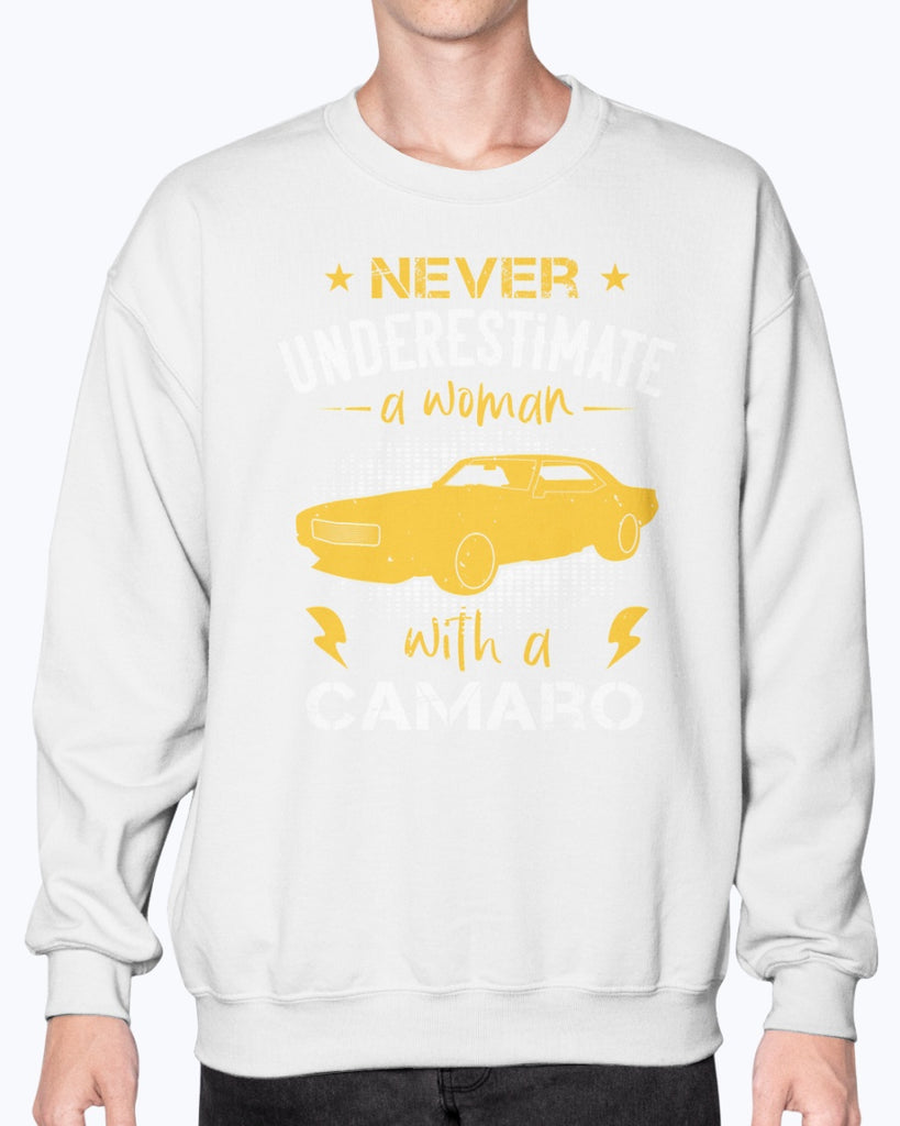 .32 never underestimate a woman with a camaro - Cars- Sweatshirt - Crew