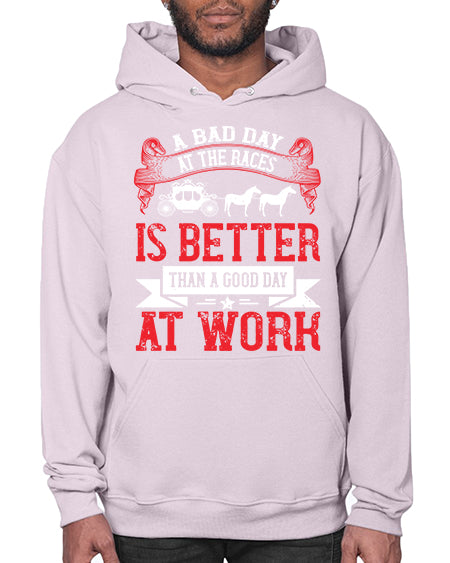a bad day at the races is better than a good day at work Style 56# - horse - Hoodie Unisex, machine washable, front pouch pocket - 8 oz, 50% cotton/50% polyester NuBlendŽ preshrunk fleece