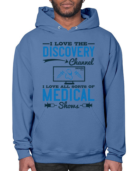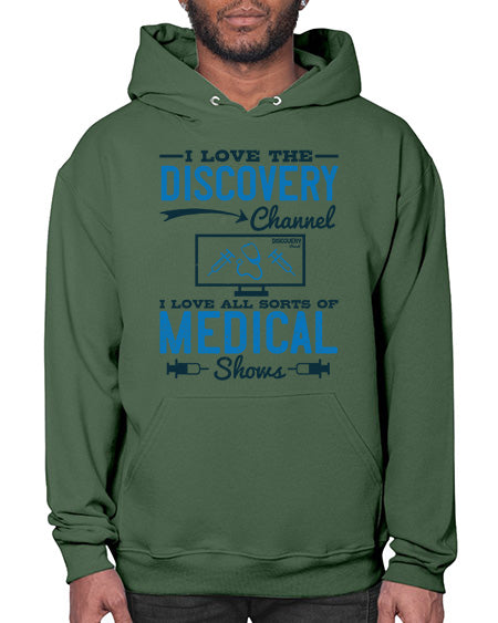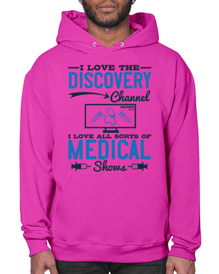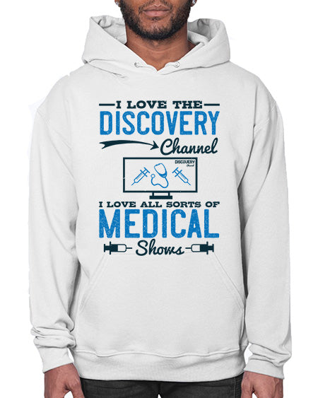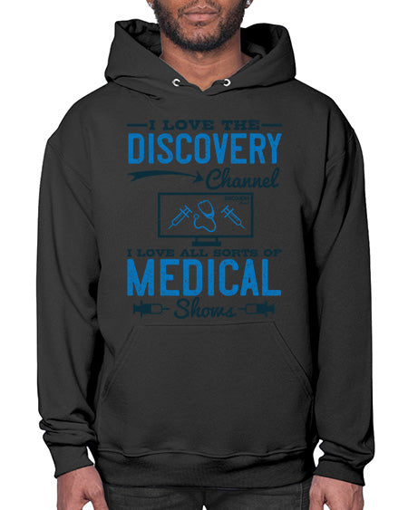I love the Discovery Channel I love all sorts of medical shows Style 203# - medical - Hoodie Unisex, machine washable, front pouch pocket - 8 oz, 50% cotton/50% polyester NuBlendŽ preshrunk fleece
