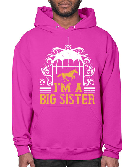 Im a big sister Style 38# - horse - Hoodie Unisex, machine washable, front pouch pocket - 8 oz, 50% cotton/50% polyester NuBlendŽ preshrunk fleece