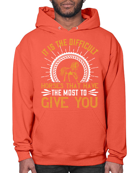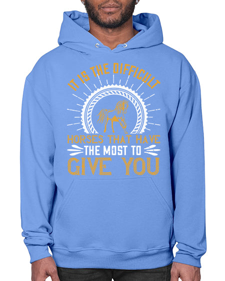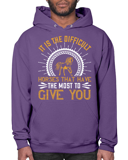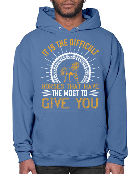 It is the difficult horses that have the most to give you Style 35# - horse - Hoodie Unisex, machine washable, front pouch pocket - 8 oz, 50% cotton/50% polyester NuBlendŽ preshrunk fleece