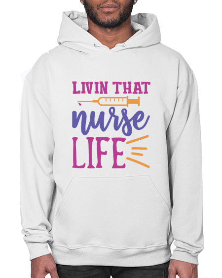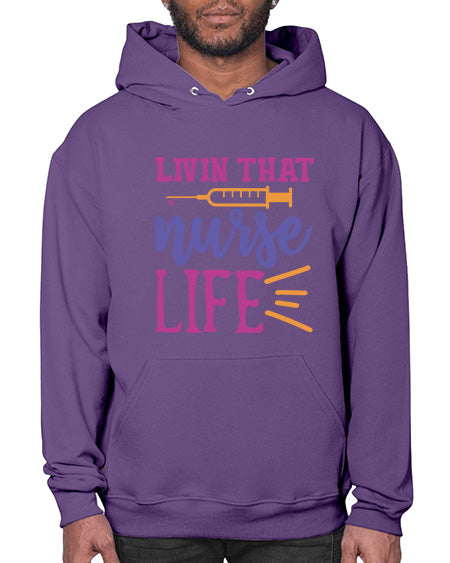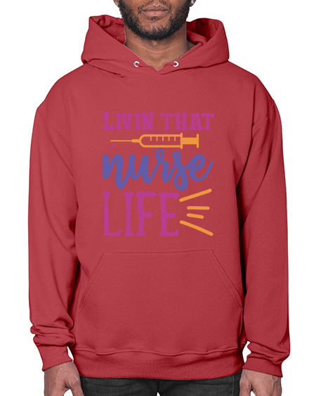 livin that nurse life Style 276# - nurse - Hoodie Unisex, machine washable, front pouch pocket - 8 oz, 50% cotton/50% polyester NuBlendŽ preshrunk fleece