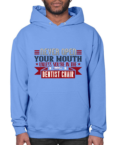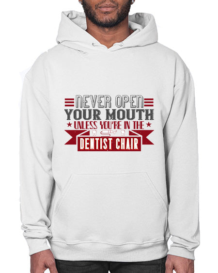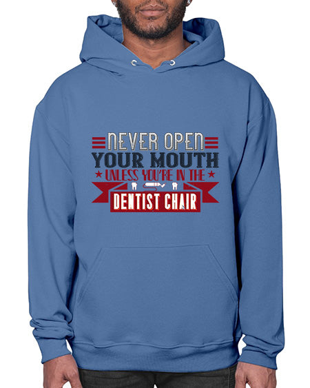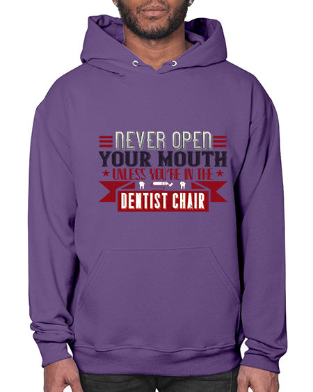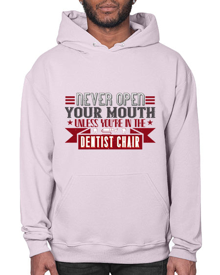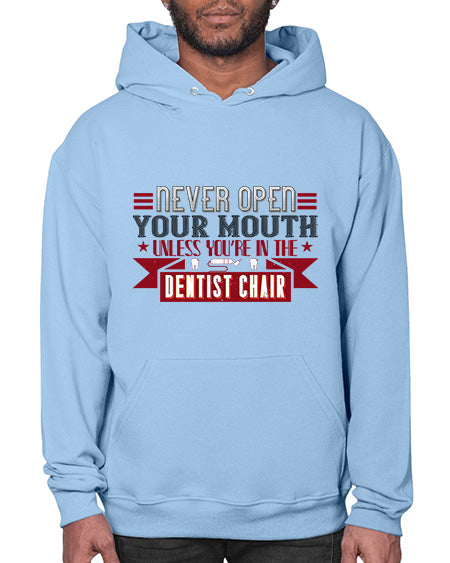 Never open your mouthunless Style 312# - dentist - Hoodie Unisex, machine washable, front pouch pocket - 8 oz, 50% cotton/50% polyester NuBlendŽ preshrunk fleece