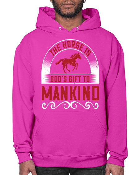 The horse is Gods gift to mankind Style 20# - horse - Hoodie Unisex, machine washable, front pouch pocket - 8 oz, 50% cotton/50% polyester NuBlendŽ preshrunk fleece