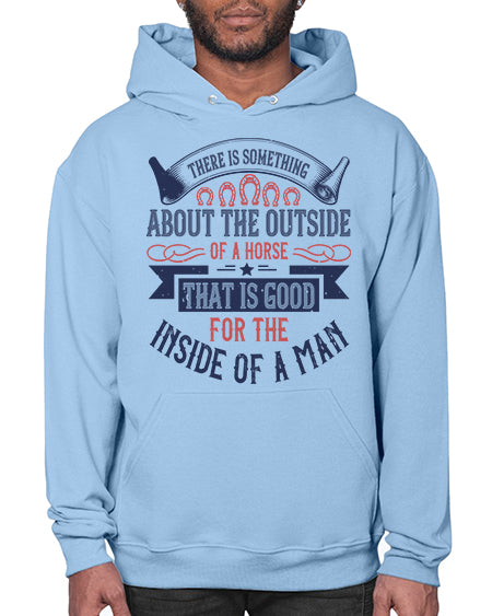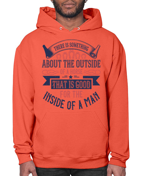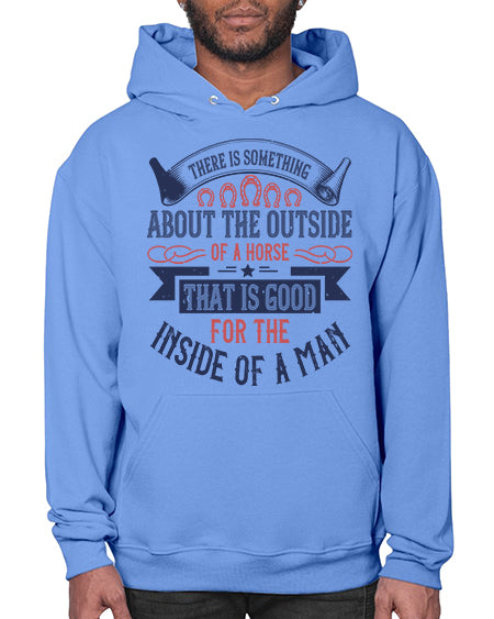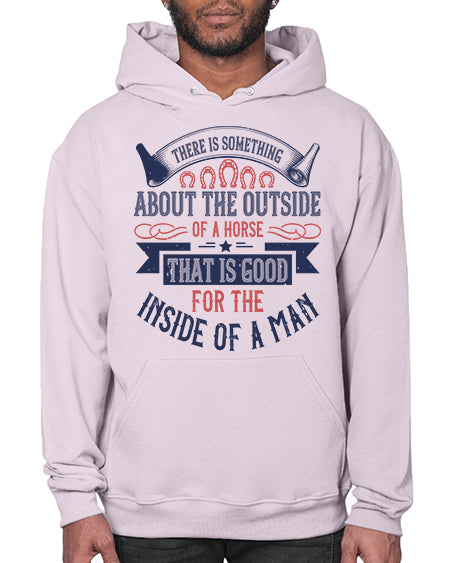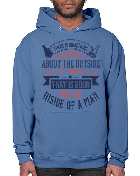 There is something about the outside of a horse that is good for the inside of a man Style 16# - horse - Hoodie Unisex, machine washable, front pouch pocket - 8 oz, 50% cotton/50% polyester NuBlendŽ preshrunk fleece