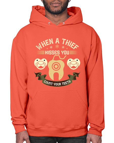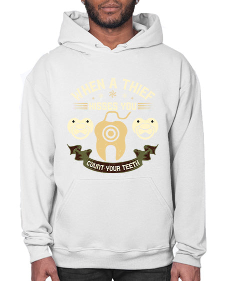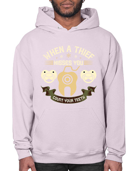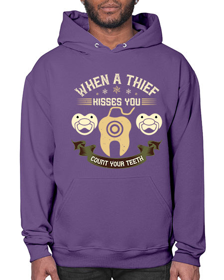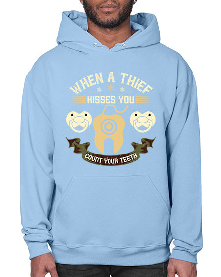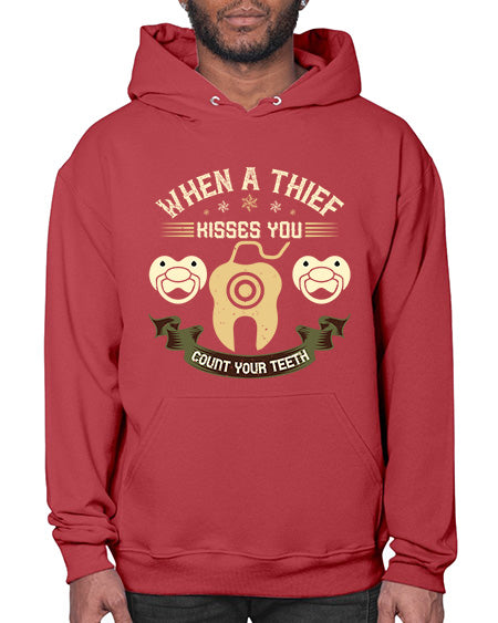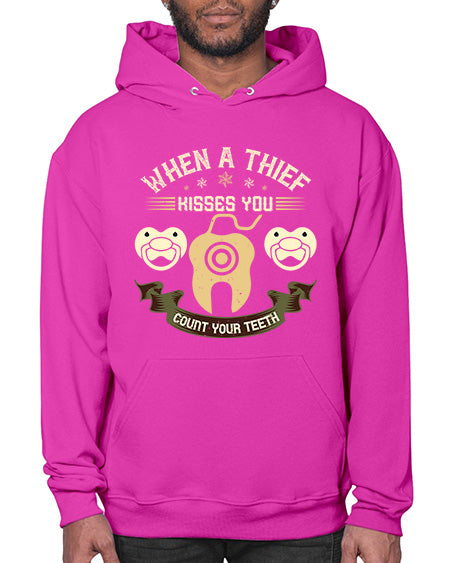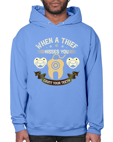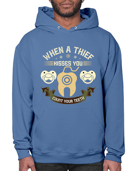 When a thif kisses you count your teeth Style 471# - dentist - Hoodie Unisex, machine washable, front pouch pocket - 8 oz, 50% cotton/50% polyester NuBlendŽ preshrunk fleece