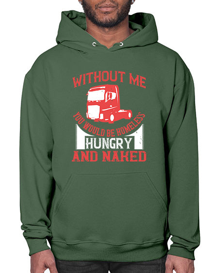 without me you would be homeless hungry and naked Style 476# - truck driver- Hoodie