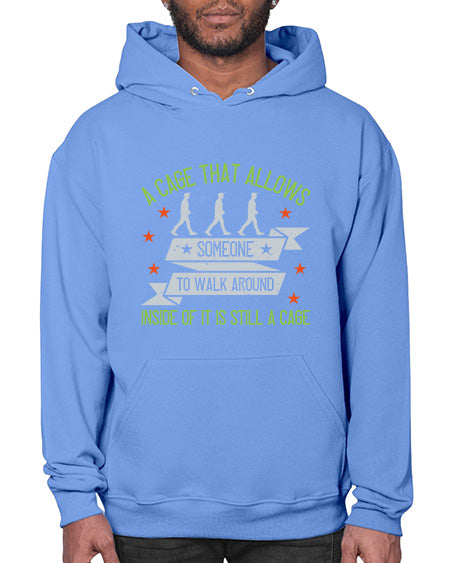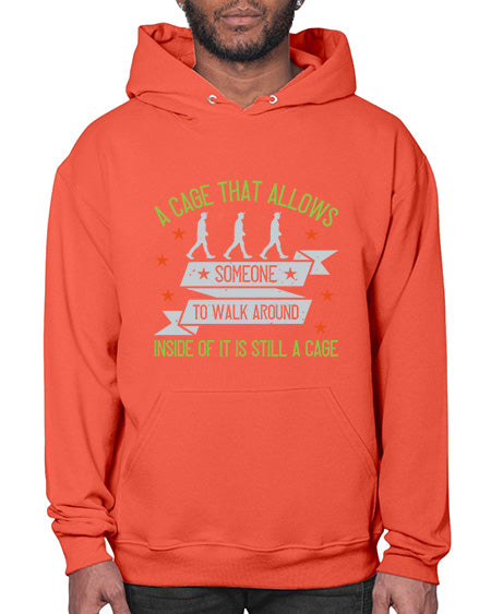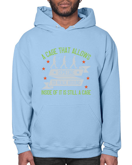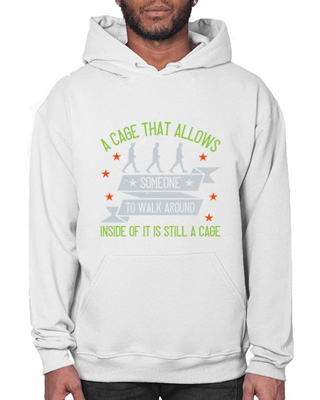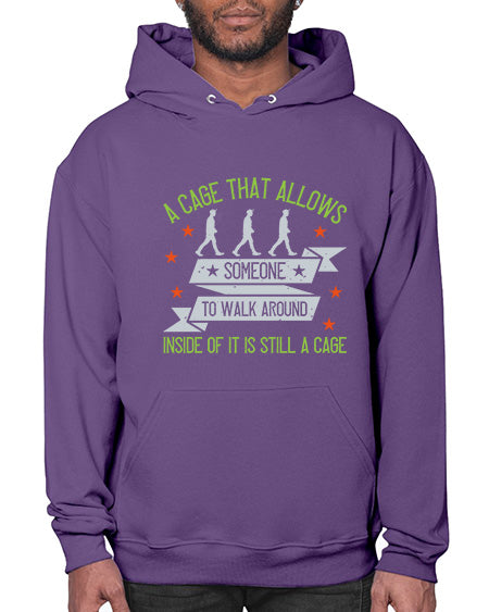 a cage that allows someone to walk around inside of it is still a cage 95# - walking - Hoodie Unisex, machine washable, front pouch pocket - 8 oz, 50% cotton/50% polyester NuBlendŽ preshrunk fleece
