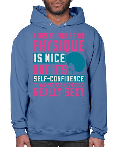 A great figure or physique is nice but its selfconfidence that makes someone really sexy Style 40# - Sub - Hoodie Unisex, machine washable, front pouch pocket - 8 oz, 50% cotton/50% polyester NuBlendŽ preshrunk fleece