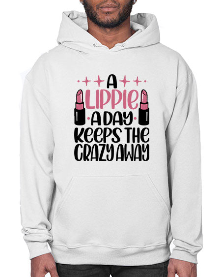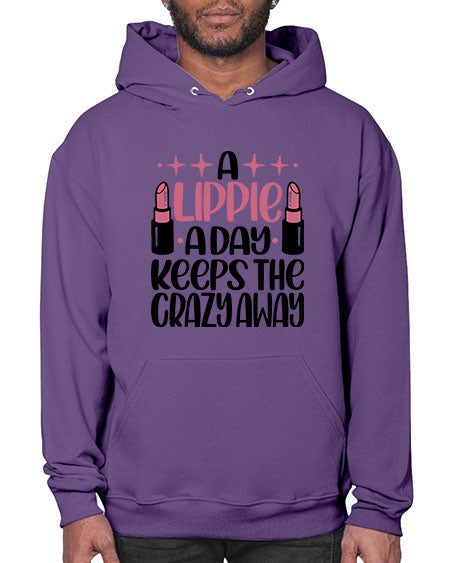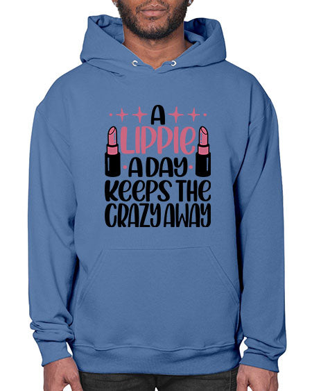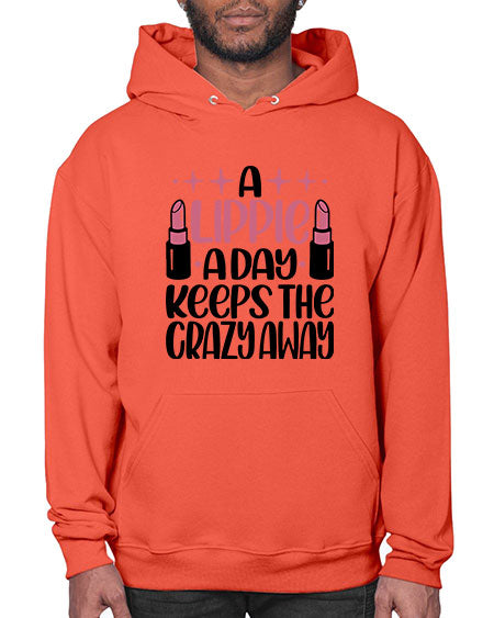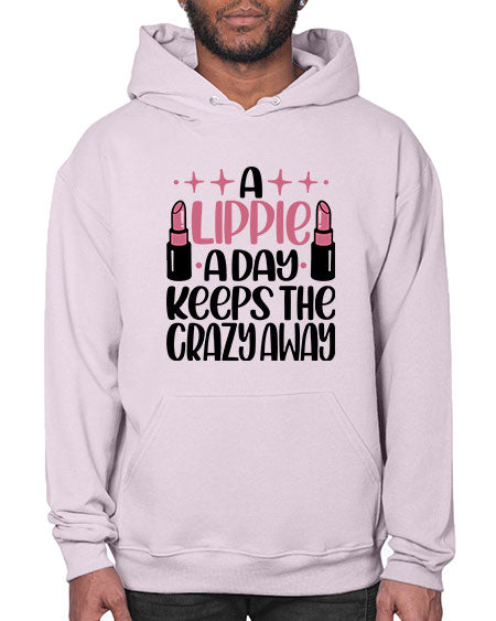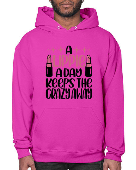 A Lippie A Day Keeps The Crazy Away Style 150# - beauty - fashion - Hoodie Unisex, machine washable, front pouch pocket - 8 oz, 50% cotton/50% polyester NuBlendŽ preshrunk fleece
