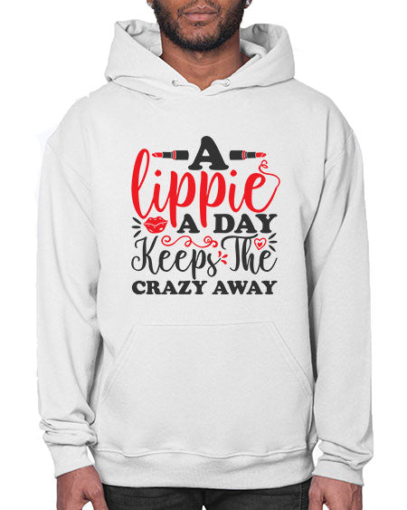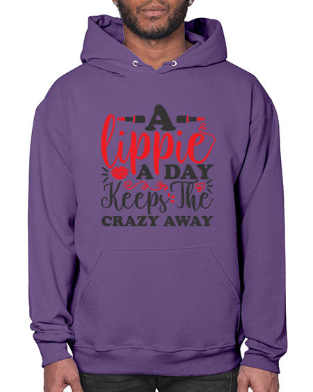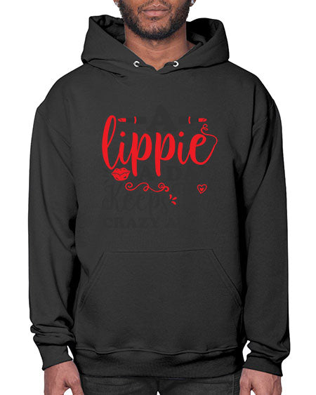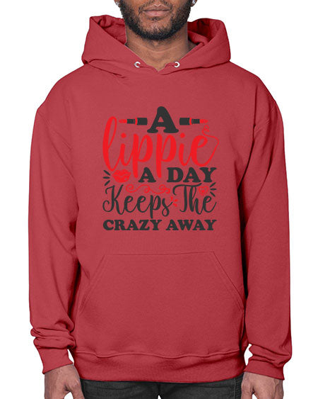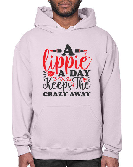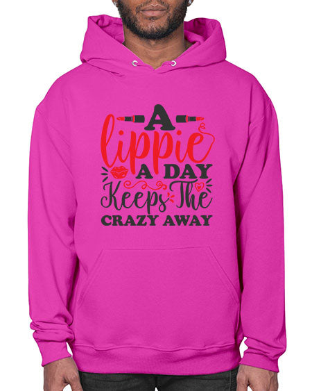 a lippie a day keeps the crazyaway Style 166# - beauty - fashion - Hoodie Unisex, machine washable, front pouch pocket - 8 oz, 50% cotton/50% polyester NuBlendŽ preshrunk fleece