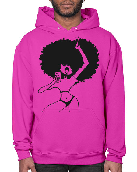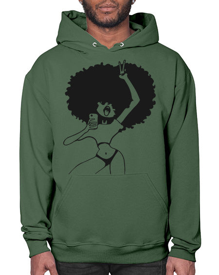 afro woman taking selfie 66# - Sub - Hoodie Unisex, machine washable, front pouch pocket - 8 oz, 50% cotton/50% polyester NuBlendŽ preshrunk fleece