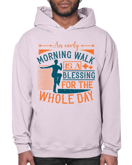An early morning walk is a blessing for the whole day Style 28# - Sub - Hoodie Unisex, machine washable, front pouch pocket - 8 oz, 50% cotton/50% polyester NuBlendŽ preshrunk fleece