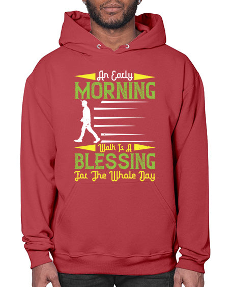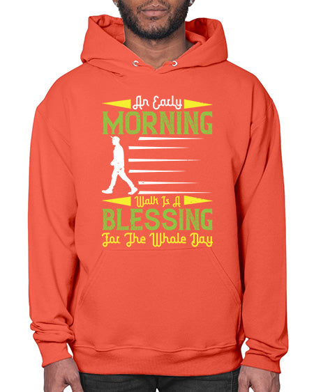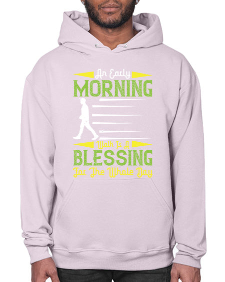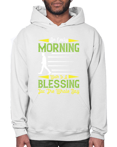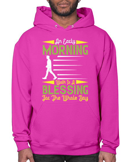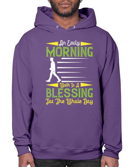 an earlymorning walk is a blessing for the whole day 110# - walking - Hoodie Unisex, machine washable, front pouch pocket - 8 oz, 50% cotton/50% polyester NuBlendŽ preshrunk fleece