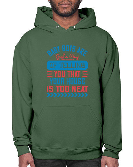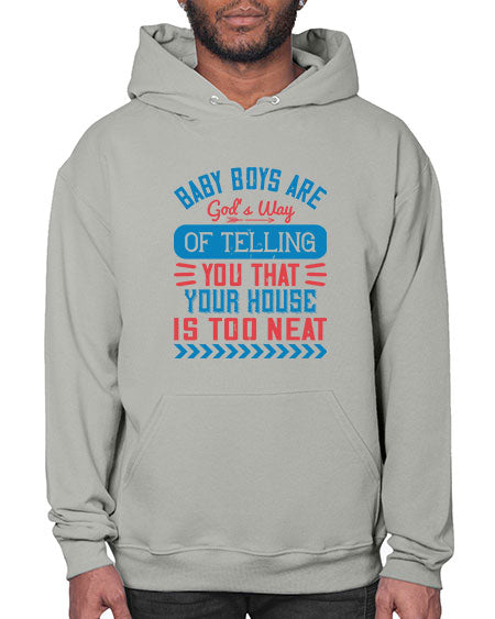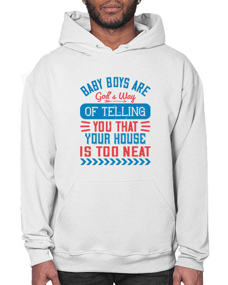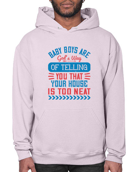 Baby boys are God’s way of telling you that your house is too neat Style 274# - babies - Hoodie Unisex, machine washable, front pouch pocket - 8 oz, 50% cotton/50% polyester NuBlendŽ preshrunk fleece