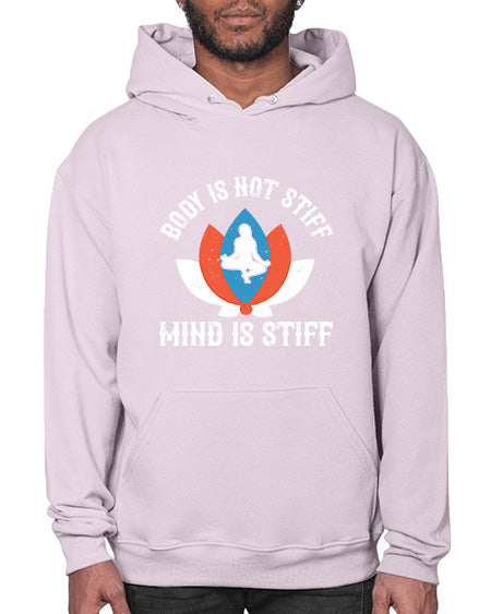 body is not stiff mind is stiff 122# - yoga - Hoodie Unisex, machine washable, front pouch pocket - 8 oz, 50% cotton/50% polyester NuBlendŽ preshrunk fleece