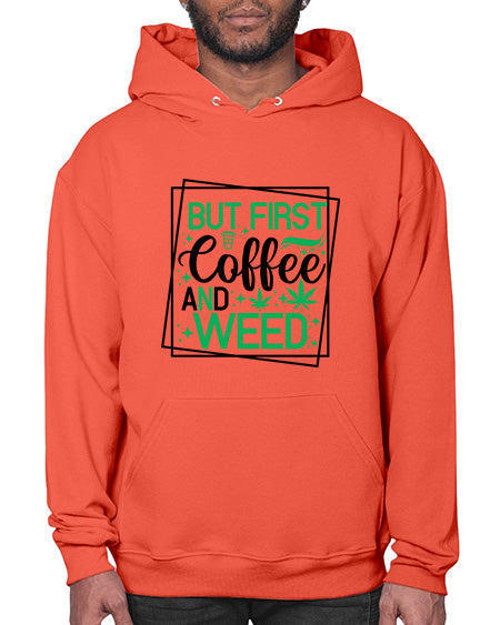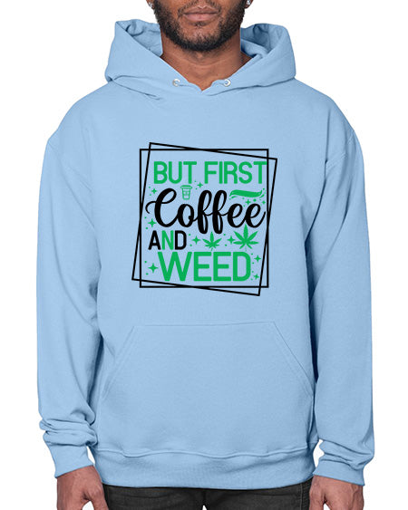 But First Coffee And Weed 284# - graphic - Hoodie Unisex, machine washable, front pouch pocket - 8 oz, 50% cotton/50% polyester NuBlendŽ preshrunk fleece