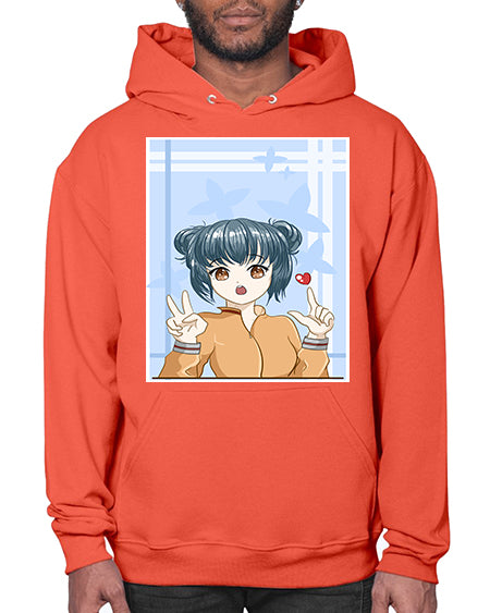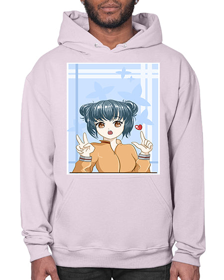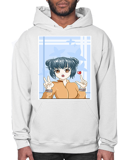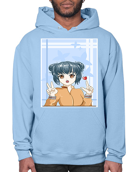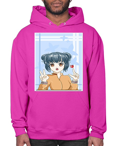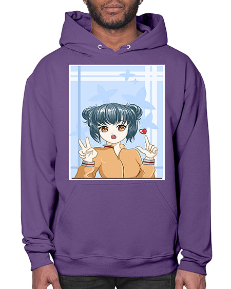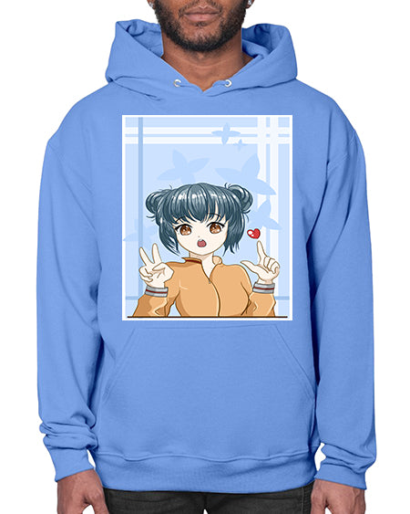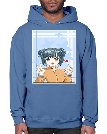 Cute and beautiful girl dark blue hair with love 74# - anime- Hoodie