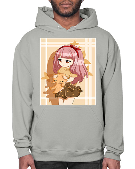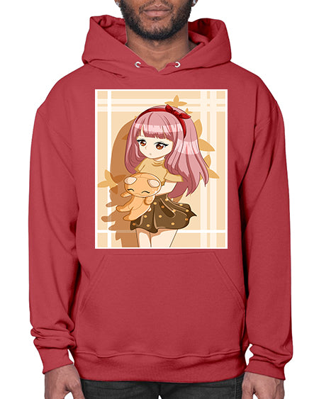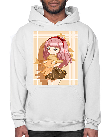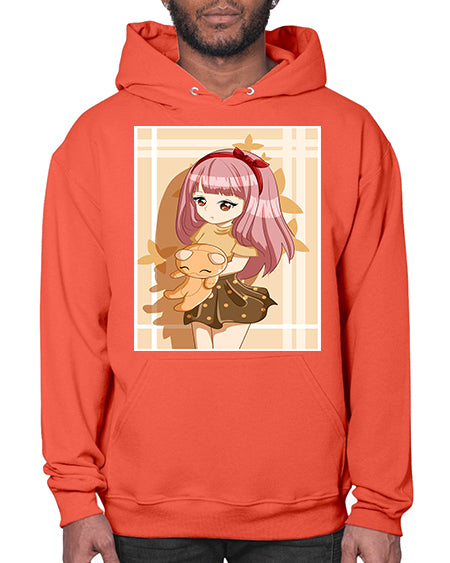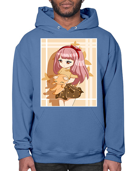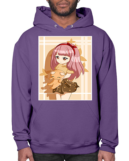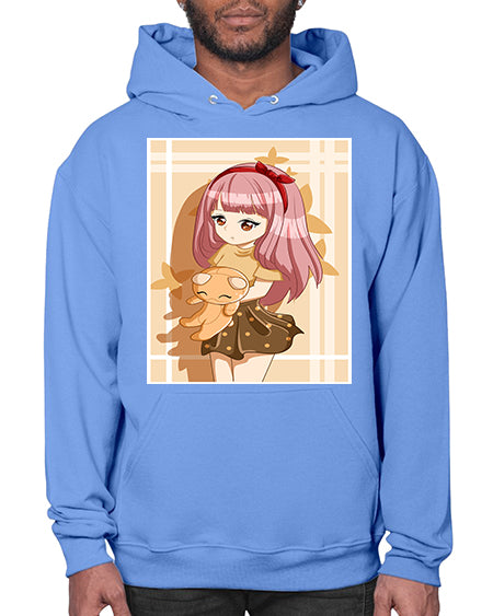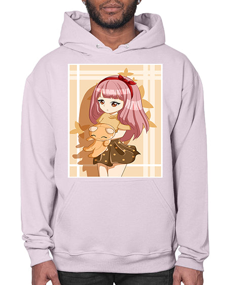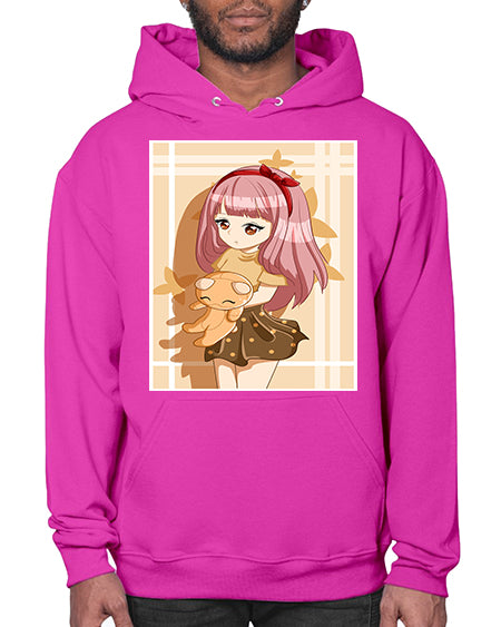 Cute and beautiful girl long pink hair with doll 9# - anime- Hoodie