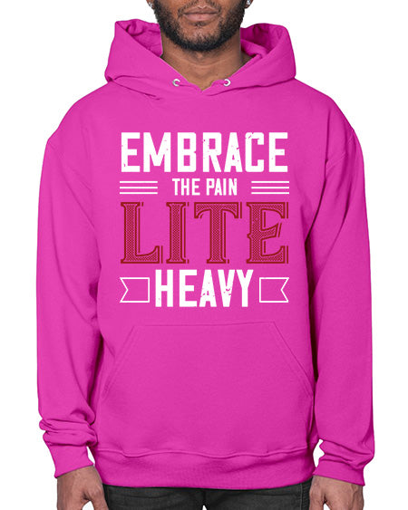 embrace the pain lite heavy 14# - gym - Hoodie Unisex, machine washable, front pouch pocket - 8 oz, 50% cotton/50% polyester NuBlendŽ preshrunk fleece