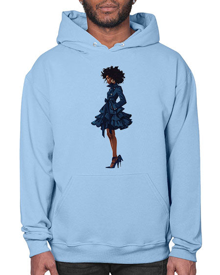fashion girl in indigo 28# - fashion - Hoodie Unisex, machine washable, front pouch pocket - 8 oz, 50% cotton/50% polyester NuBlendŽ preshrunk fleece