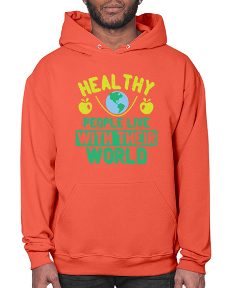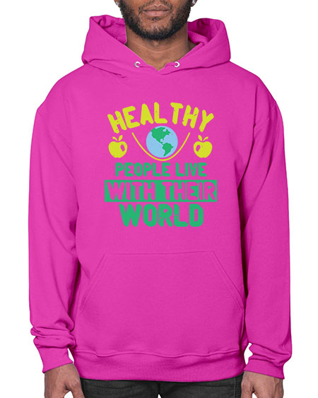 Healthy people live with their world Style 38# - Sub - Hoodie Unisex, machine washable, front pouch pocket - 8 oz, 50% cotton/50% polyester NuBlendŽ preshrunk fleece