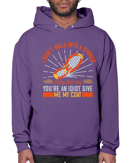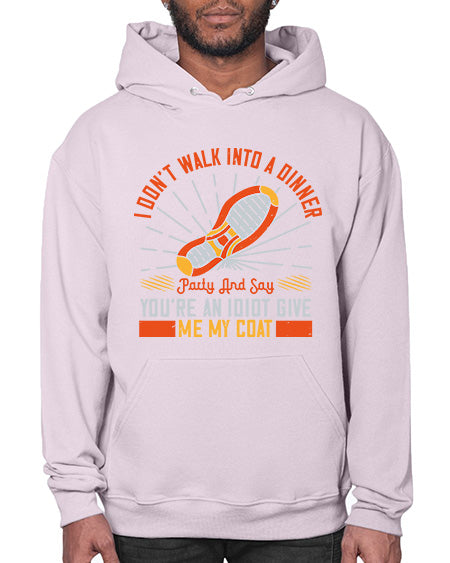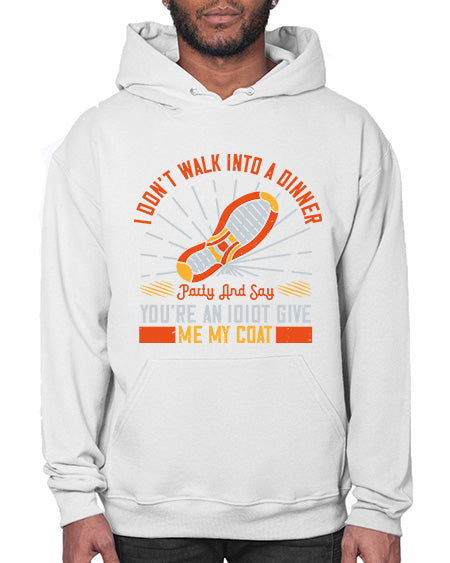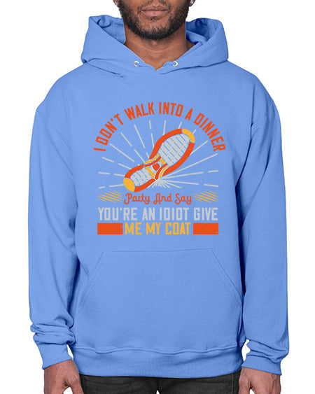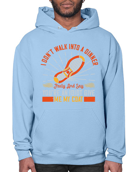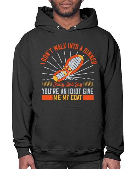 i dont walk into a dinner party and say youre an idiot give me my coat 285# - walking- Hoodie