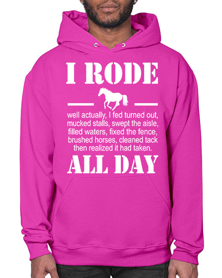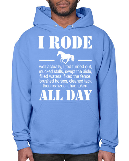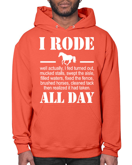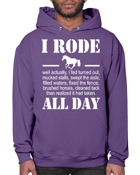 i rode my horse all day - horse - Hoodie Unisex, machine washable, front pouch pocket - 8 oz, 50% cotton/50% polyester NuBlendŽ preshrunk fleece