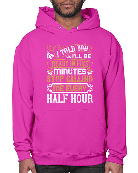 I told you Ill be ready in FIVE minutes stop calling me every half hourr Style 68# - pig- Hoodie
