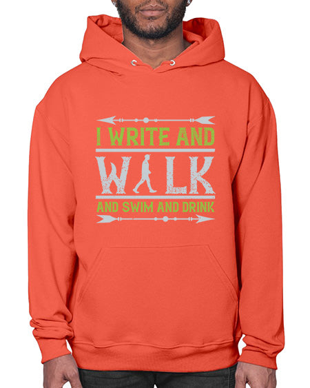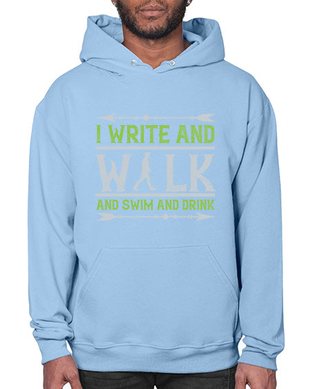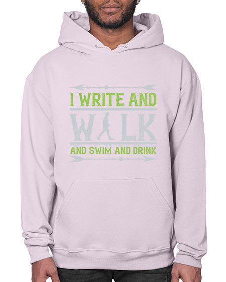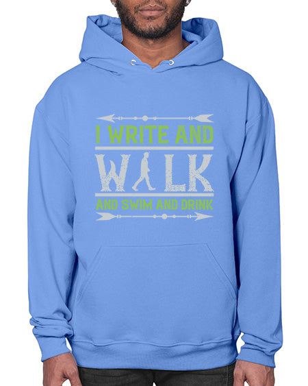 i write and walk and swim and drink 311# - walking - Hoodie Unisex, machine washable, front pouch pocket - 8 oz, 50% cotton/50% polyester NuBlendŽ preshrunk fleece