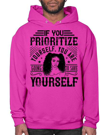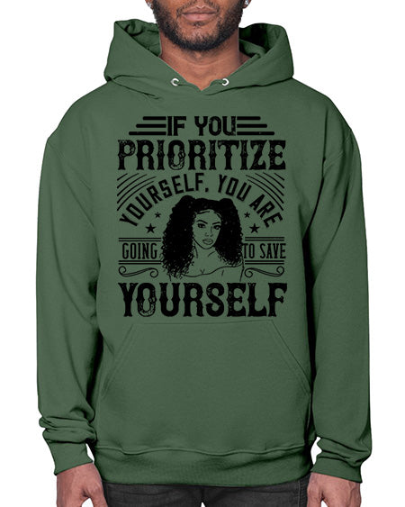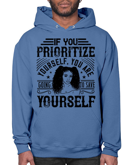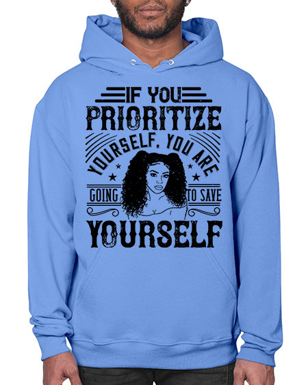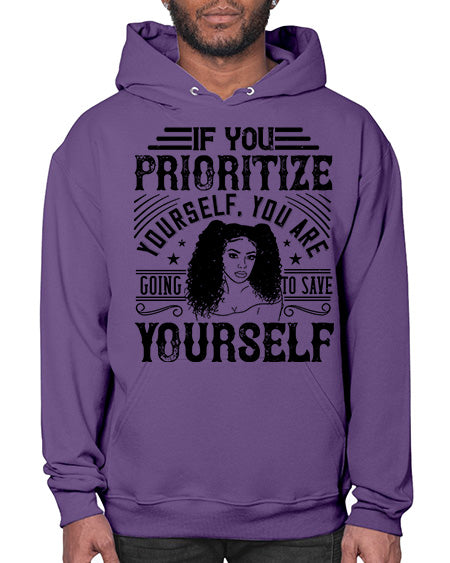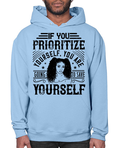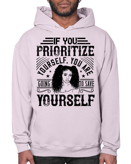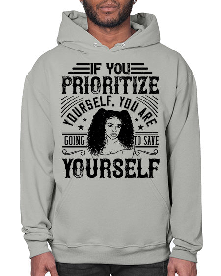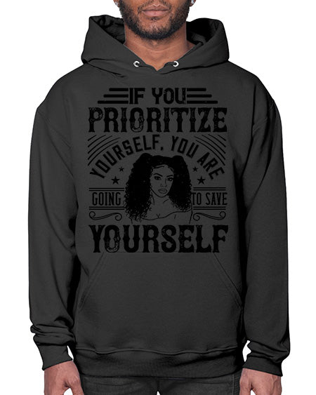 If you prioritize yourself you are going to save yourself Style 3# - black afro- Hoodie