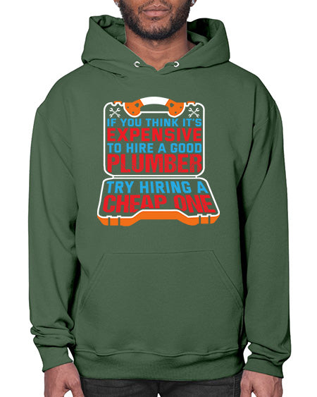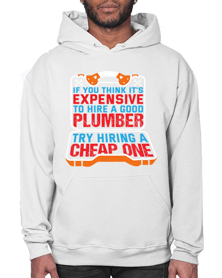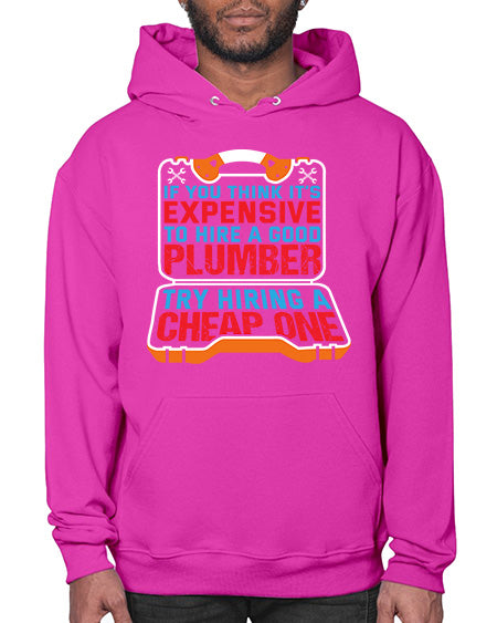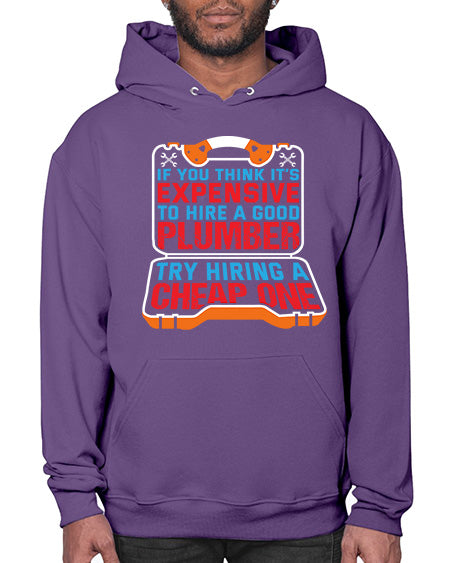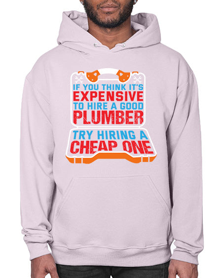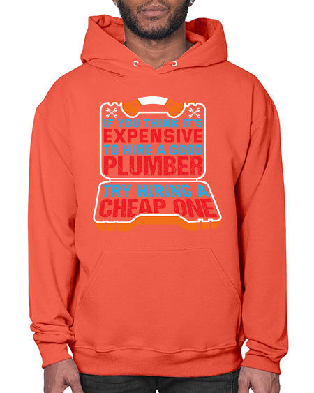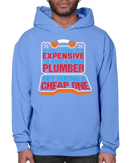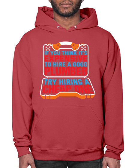 If you think it is expensive to hire a good plumber try hiring a cheap one 945# - plumber - Hoodie Unisex, machine washable, front pouch pocket - 8 oz, 50% cotton/50% polyester NuBlendŽ preshrunk fleece