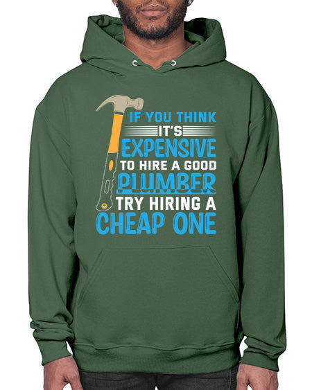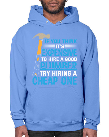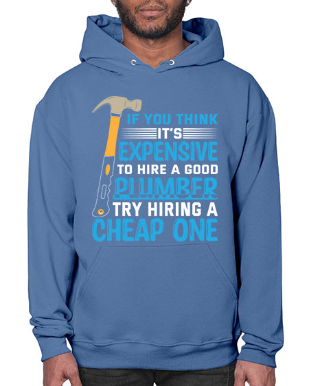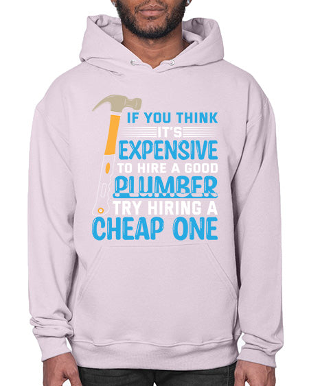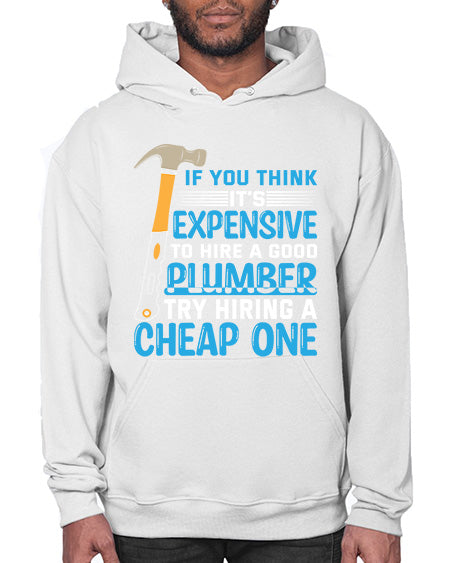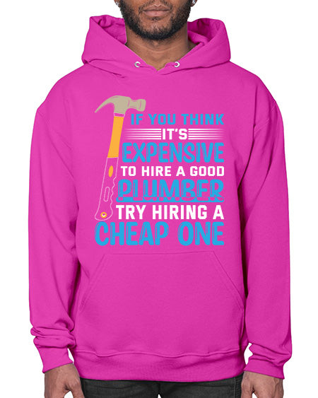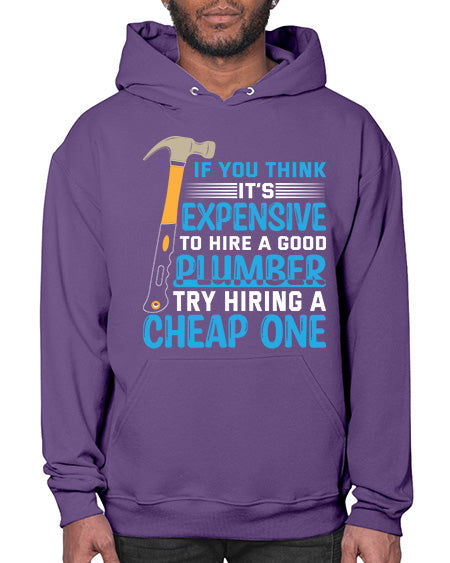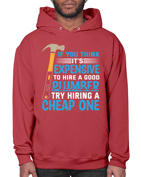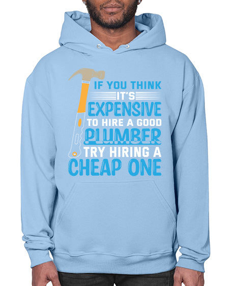 If you think it is expensive to hire a good plumber try hiring a cheap one 946# - plumber - Hoodie Unisex, machine washable, front pouch pocket - 8 oz, 50% cotton/50% polyester NuBlendŽ preshrunk fleece