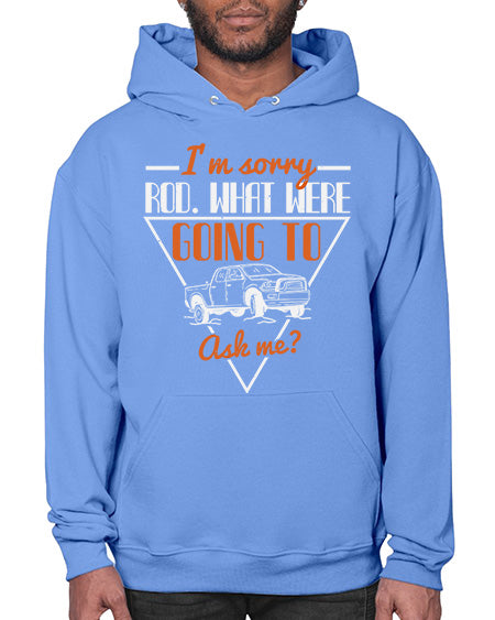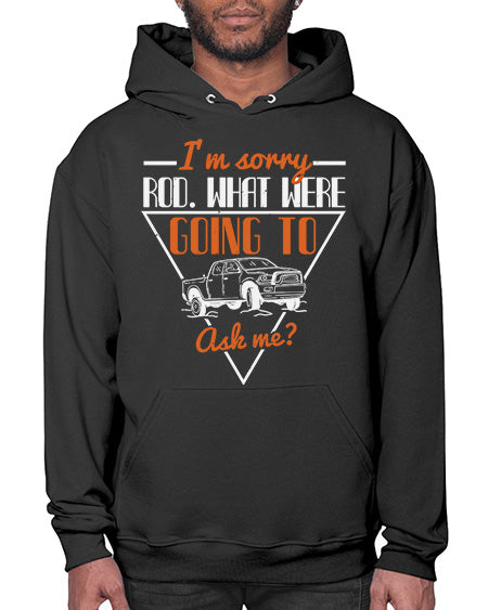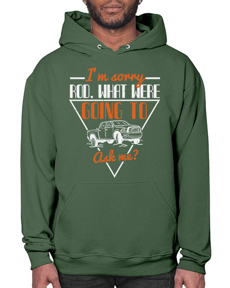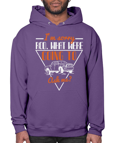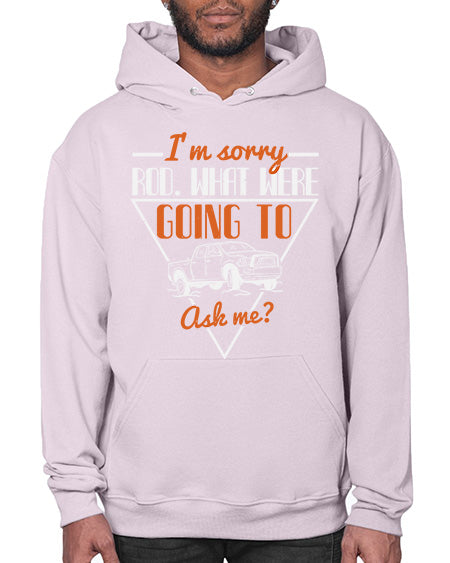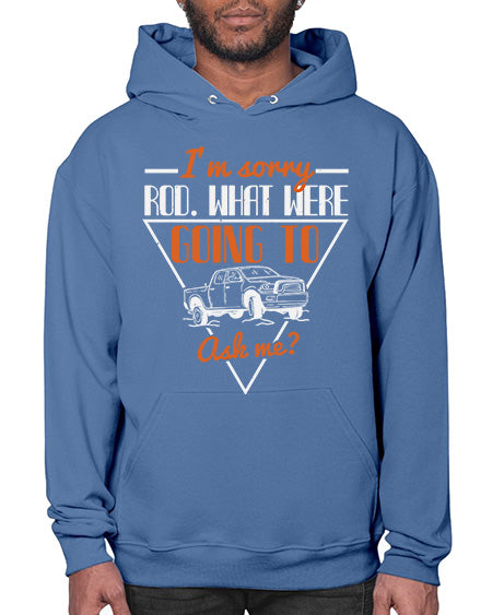 Im sorry Rod What were you going to ask me 47# - hot rod - Hoodie Unisex, machine washable, front pouch pocket - 8 oz, 50% cotton/50% polyester NuBlendŽ preshrunk fleece