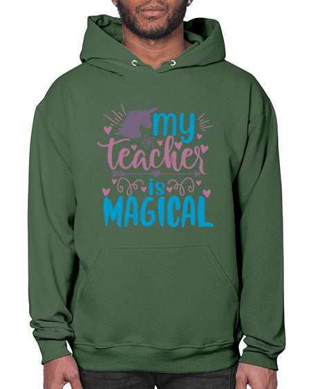 my teacher is magical 1116# - teacher - Hoodie Unisex, machine washable, front pouch pocket - 8 oz, 50% cotton/50% polyester NuBlendŽ preshrunk fleece