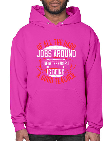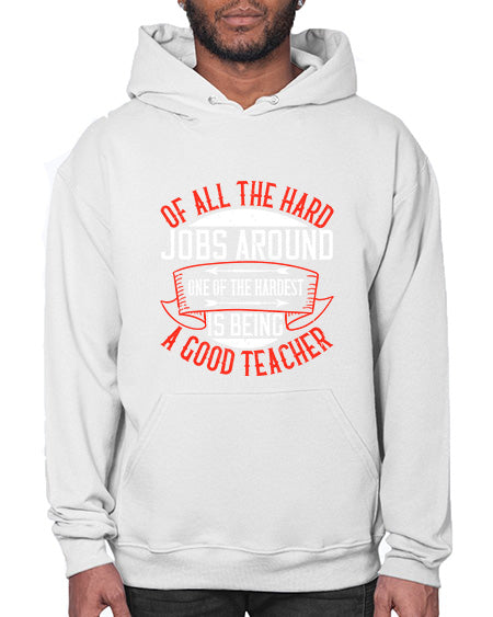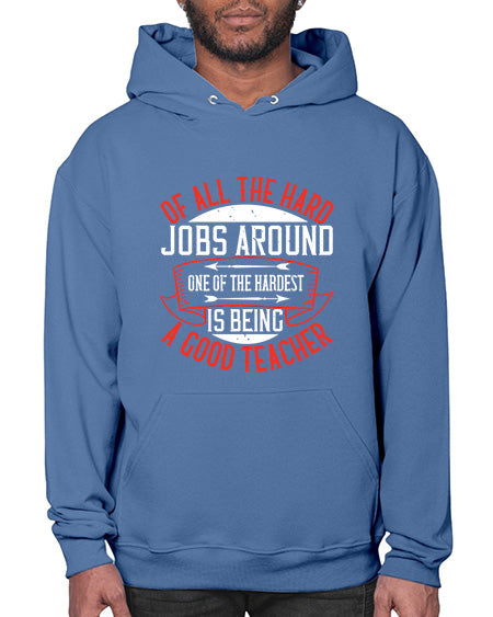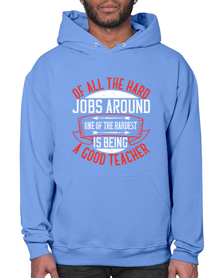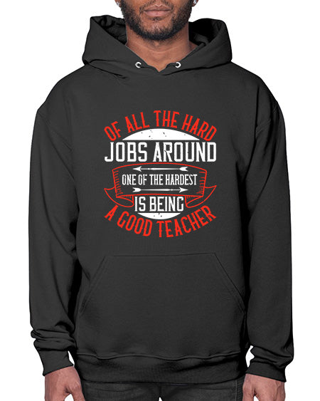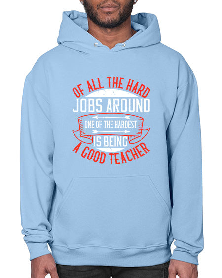Of all the hard jobs around one of the hardest is being a good teacher Style 1283# - teacher - Hoodie Unisex, machine washable, front pouch pocket - 8 oz, 50% cotton/50% polyester NuBlendŽ preshrunk fleece