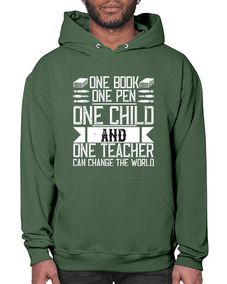 One book one pen one child and one teacher can change the world Style 1288# - teacher- Hoodie