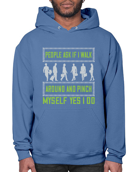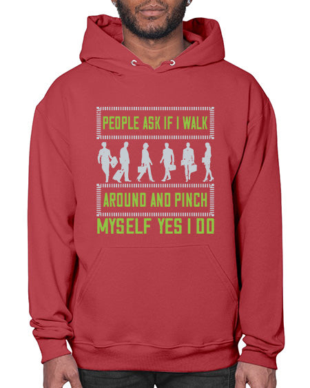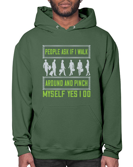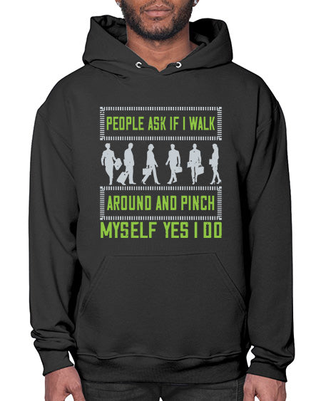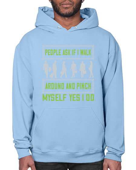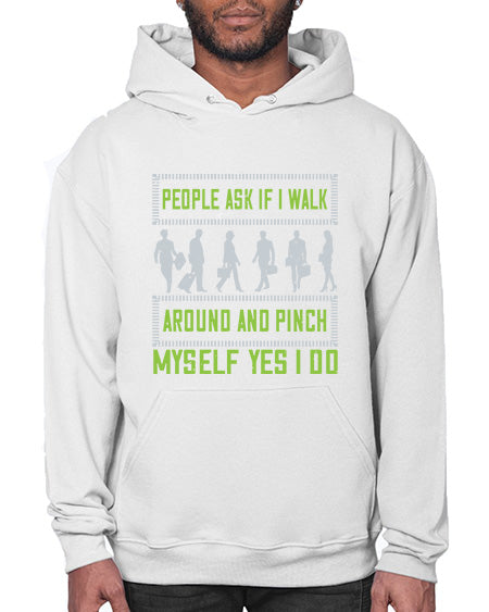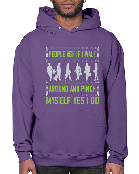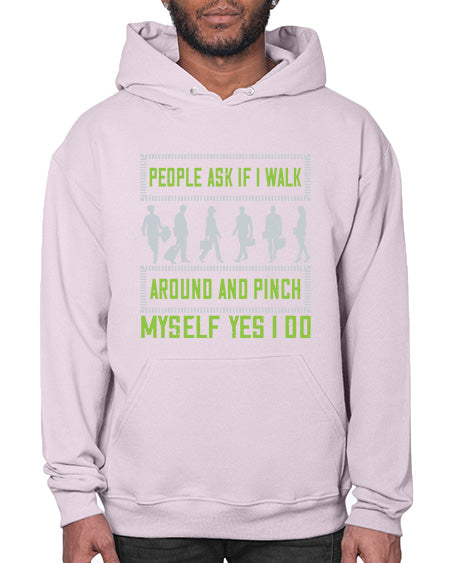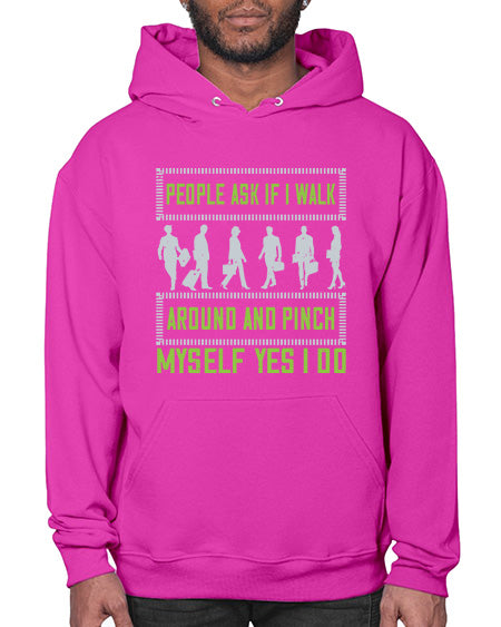 people ask if i walk around and pinch myself yes i do 489# - walking- Hoodie