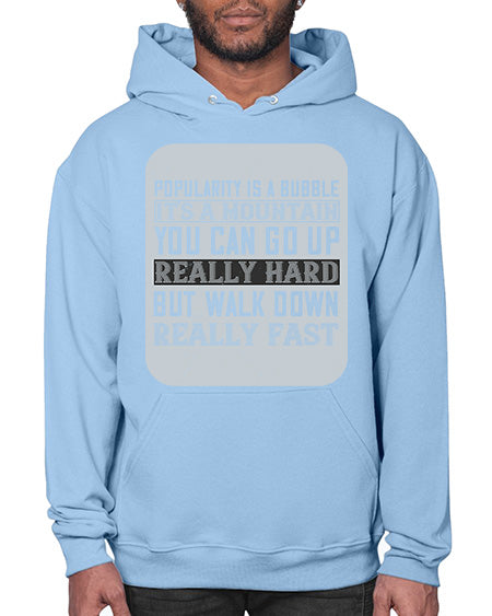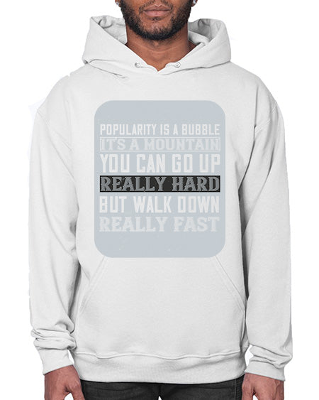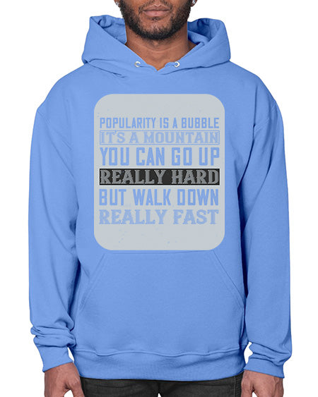 popularity is a bubble its a mountain you can go up really hard but walk down really fast 491# - walking - Hoodie Unisex, machine washable, front pouch pocket - 8 oz, 50% cotton/50% polyester NuBlendŽ preshrunk fleece